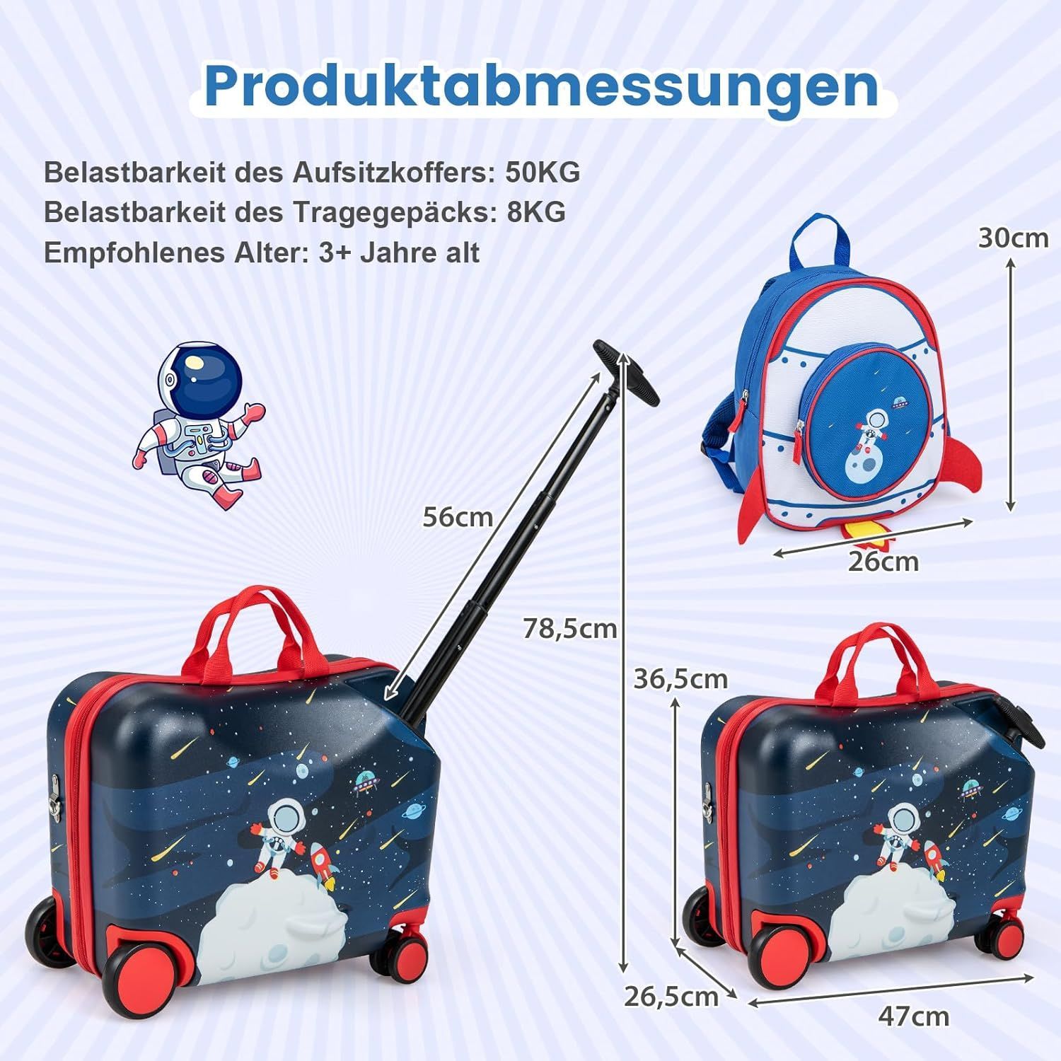 2tlg Kinderkoffer + Rucksack, 12" + 18" Kindertrolley mit Rollen und Hartschale