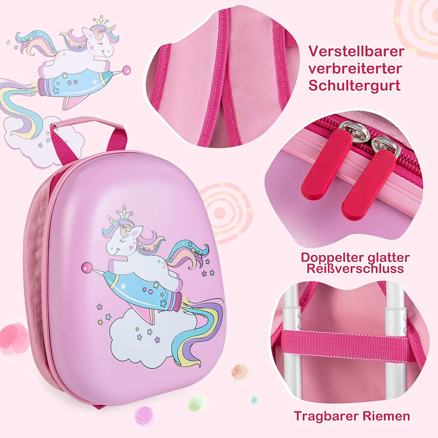 2tlg Kinderkoffer + Rucksack, Kindertrolley mit Rollen und wasserdichter Hartschale