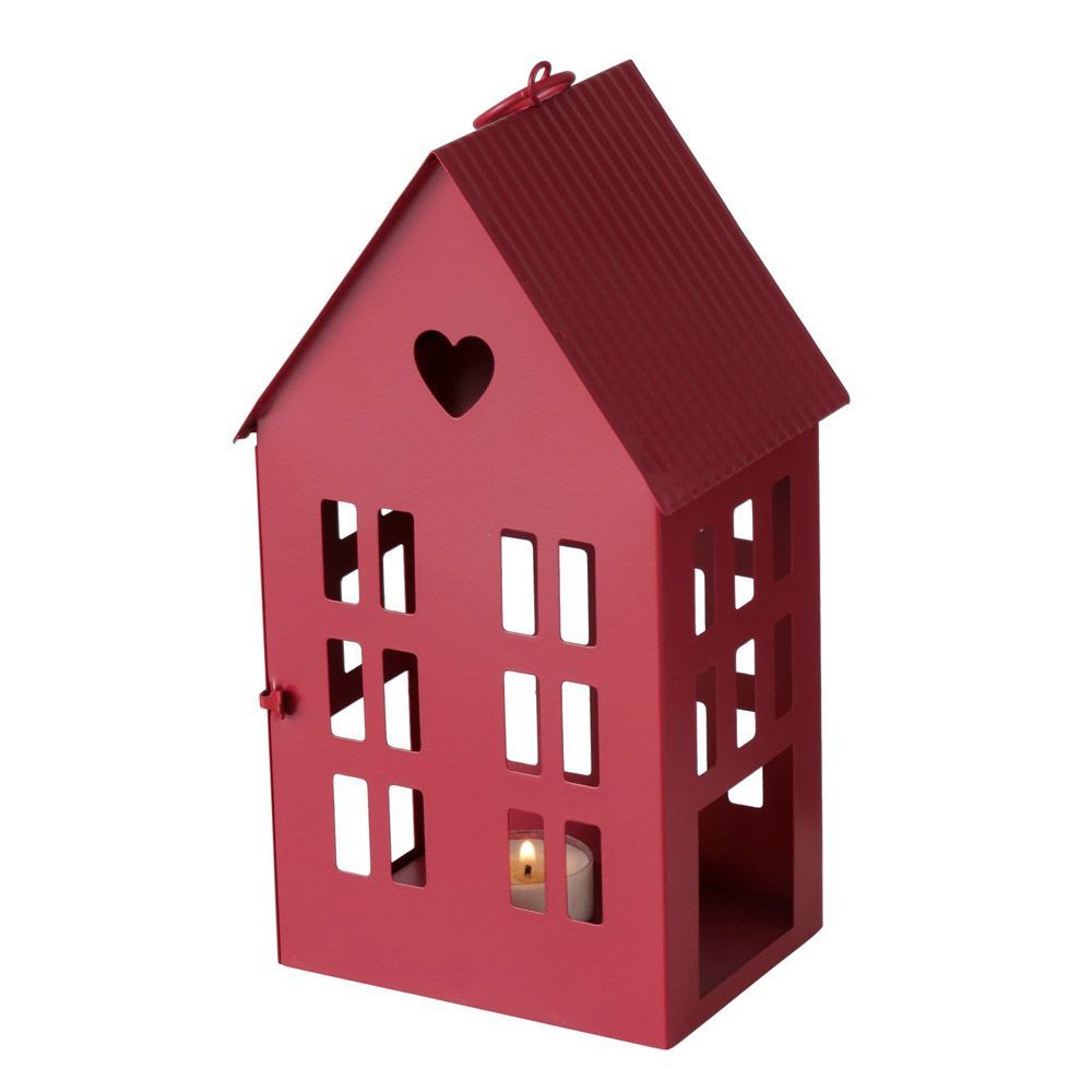 2tlg. Laterne Herzenshaus rot Haus Metall Lichterhaus mit Herzausschnitt (2 Größ