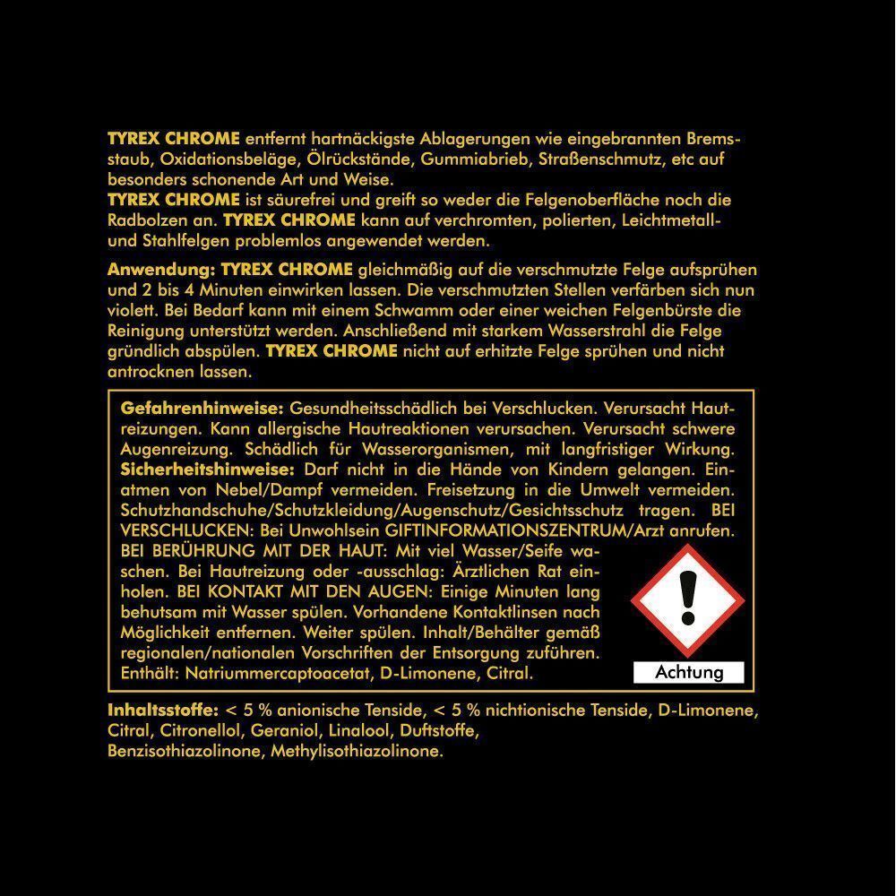 2x 750 ml TYREX CHROME Felgenreiniger Alu Chrom Stahl Alufelgen