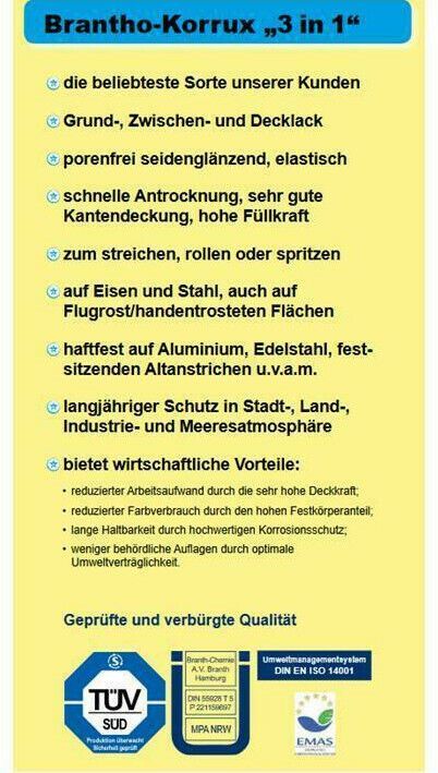 • Gruppensicherheitsdatenblatt: https://www.branth-chemie.de/doks/BranthChemie-SDB1-Brantho-Korrux.pdf