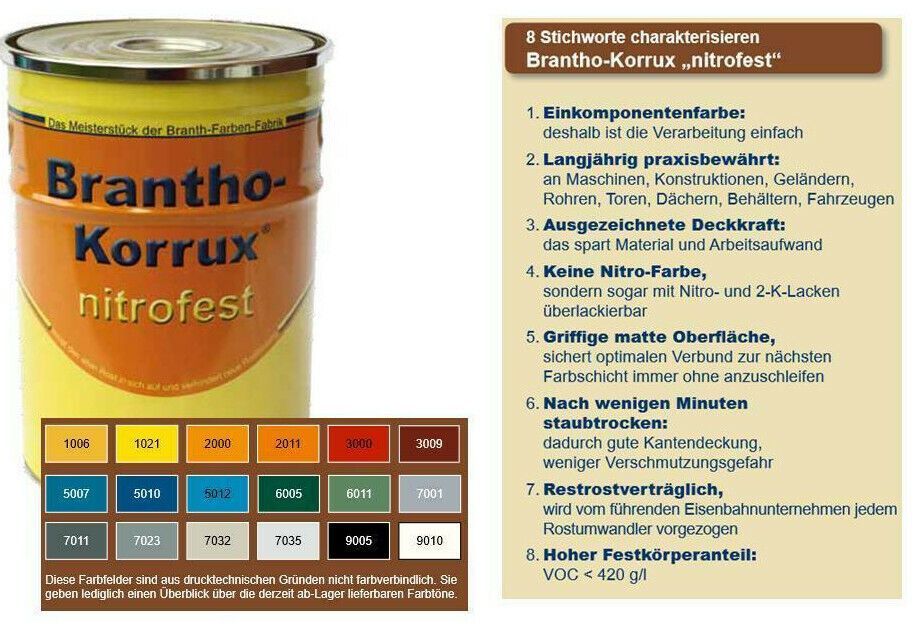 Branth 2x 750ml Brantho Korrux nitrofest RAL 3009 Rostschutz Metallschutz Farbe