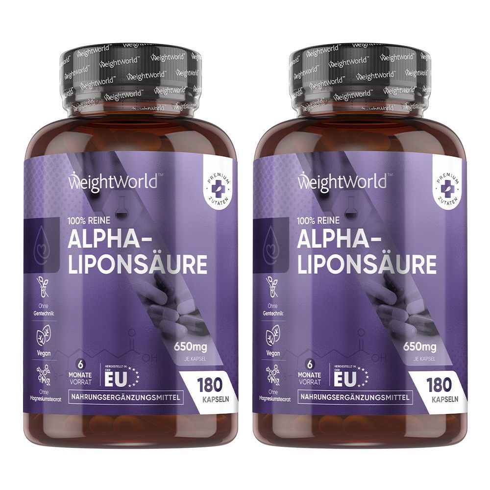 2x Alpha Liponsäure 650mg - 180 Kapseln pro Dose - Antioxidativer Schutz