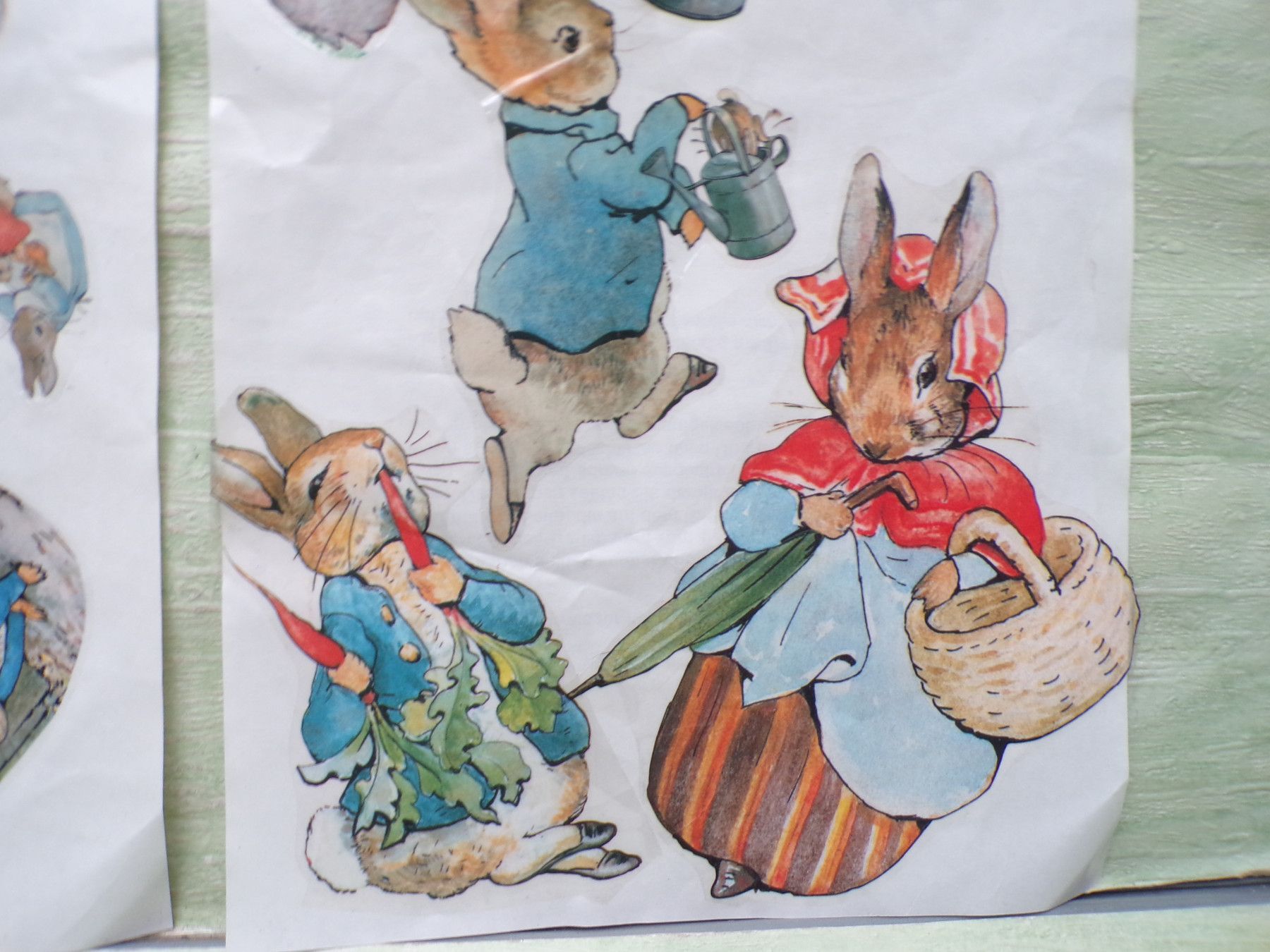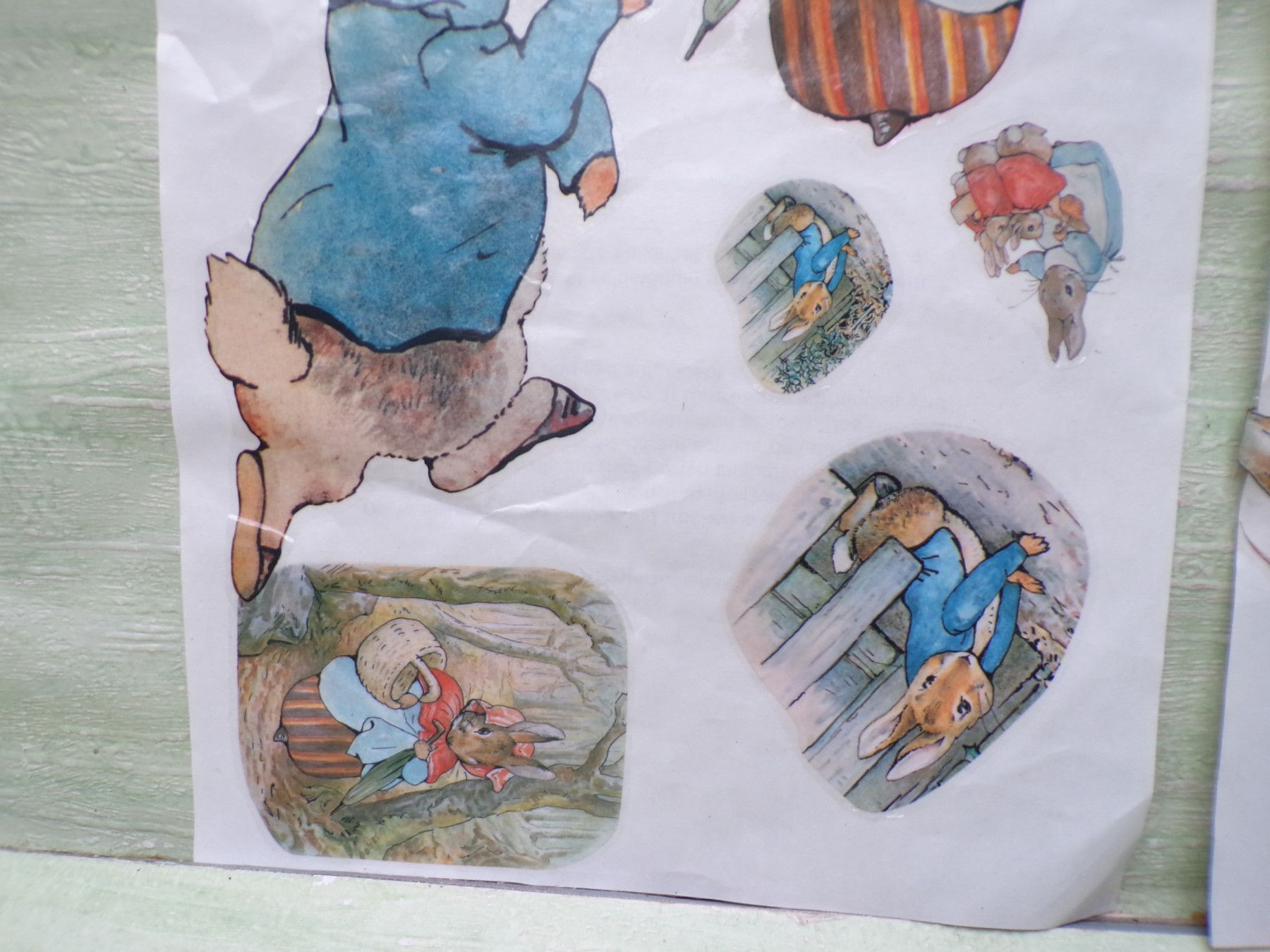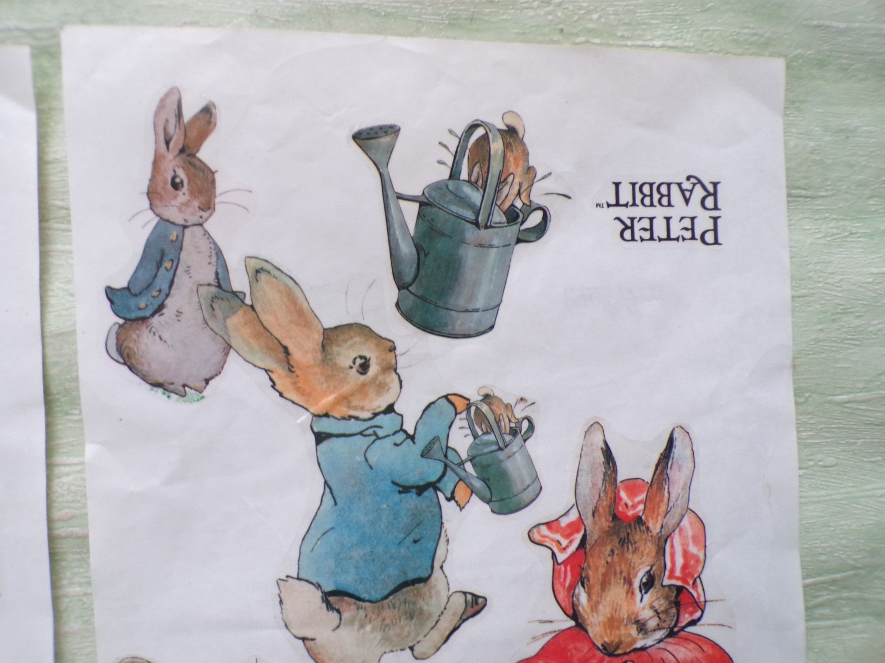 2x alte Fensterbilder Folien Peter Rabbit Bogen ca 33,5x24,5cm