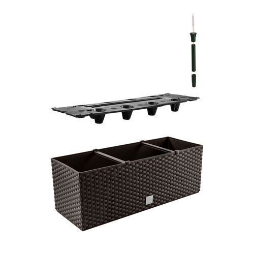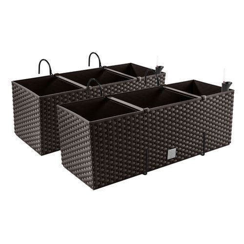 2x Balkonkasten Blumenkasten Rattan-Optik Pflanztopf Blumenkübel Braun Haken