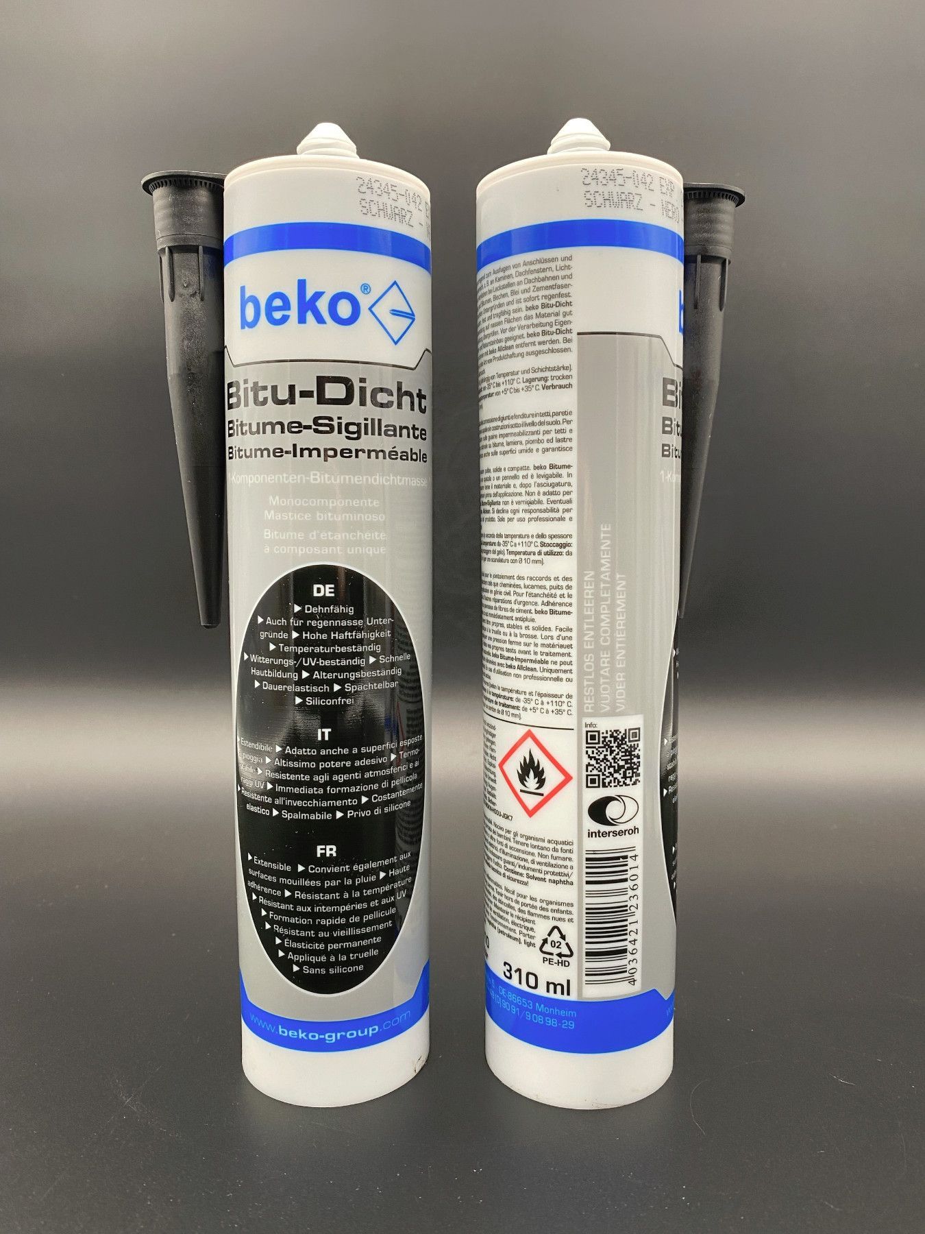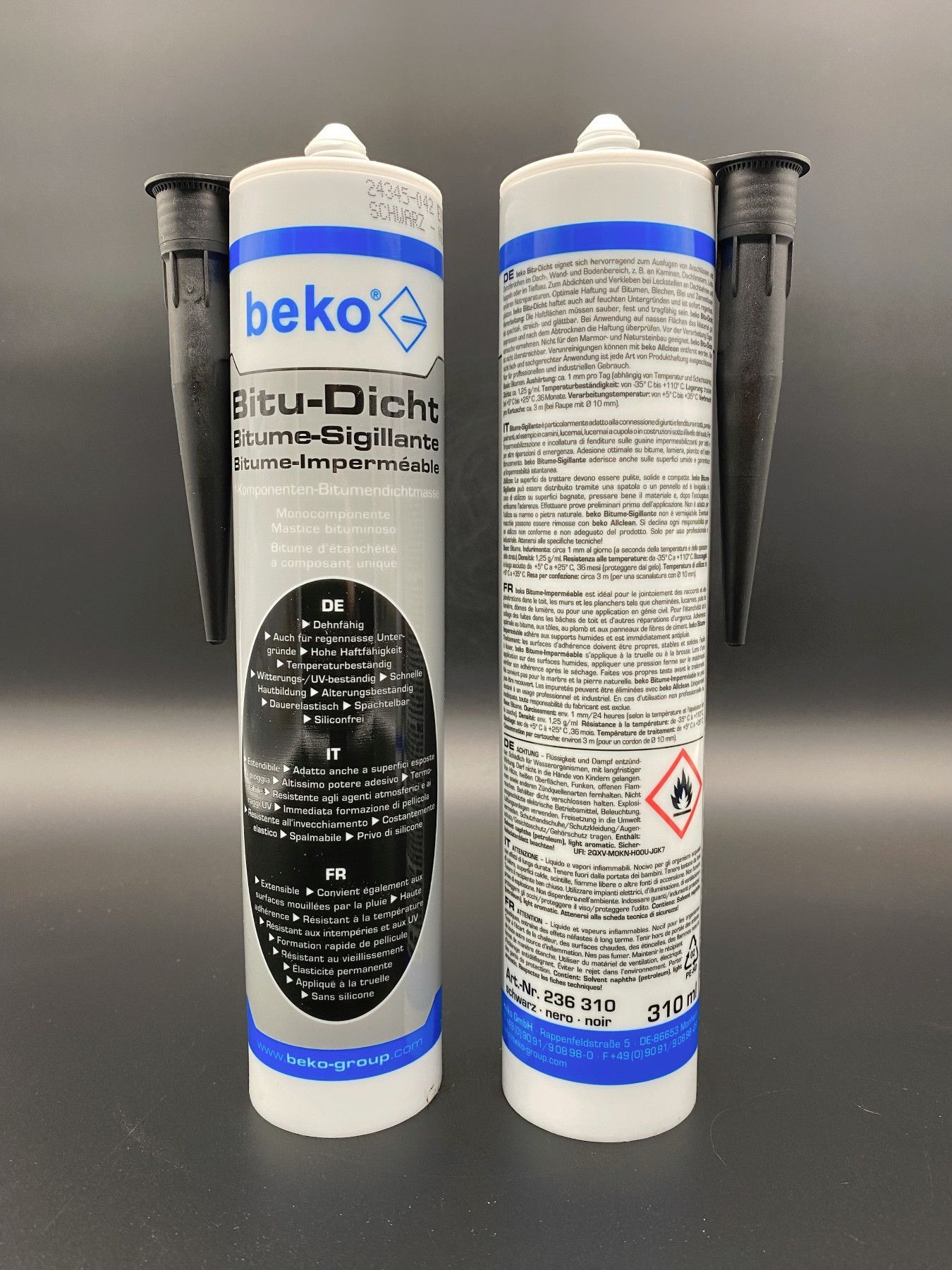 beko 2x beko Bitu-Dicht 1K Bitumendichtmasse 310ml schwarz Dachtdicht Bitumenkleber