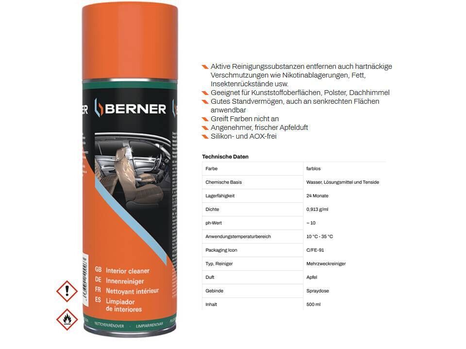 Berner 2x Berner Innenreiniger Active 500ml KfZ Innenraum Reiniger Spray 1002386