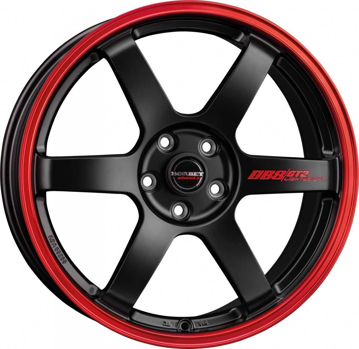 Borbet 2x Borbet DB8GT2 black matt rim red 8.5x18 ET40 - LK5/114.3 ML72.5 Felge Alu