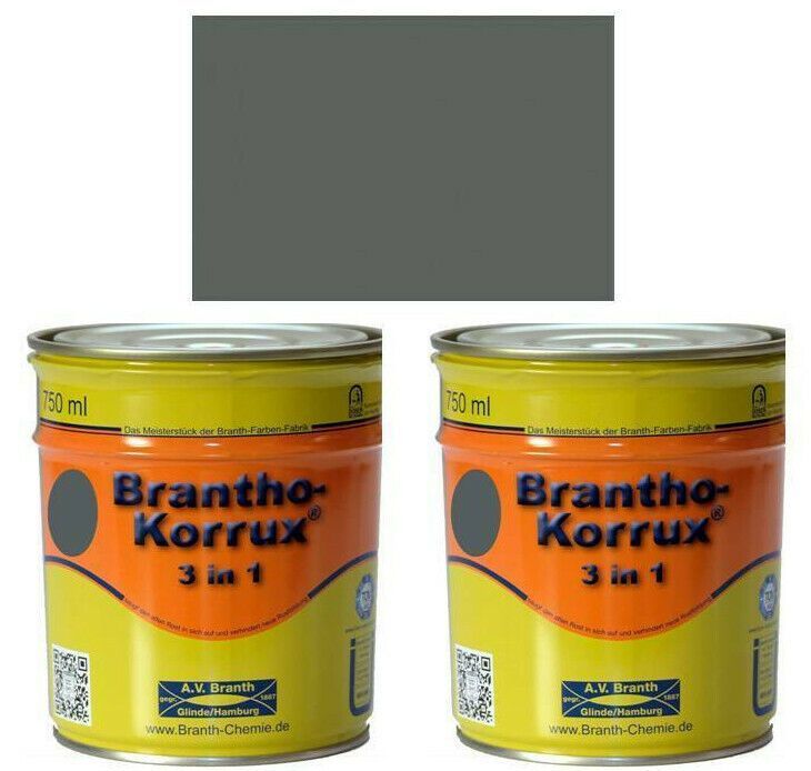 Branth 2x Brantho Korrux 3in1 Rostschutz 750ml Metallschutz Farbe RAL grau 7011