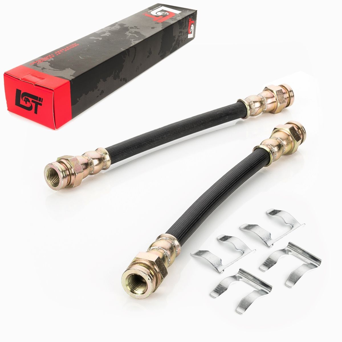 • 2x Bremsschlauch Set vorne + Halteklammer für Audi A3 Seat Leon Skoda VW Golf