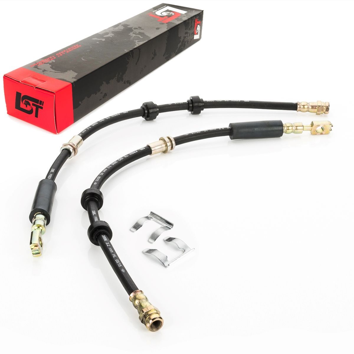 2x Bremsschlauch Set vorne + Halteklammer für Audi Seat Skoda VW - 590 mm