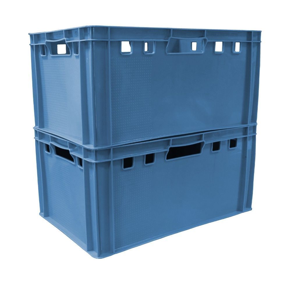 2x E3 blau stabile Plastikkisten stapelbar 60x40x30 cm + 1Deckel NEU Gastlando