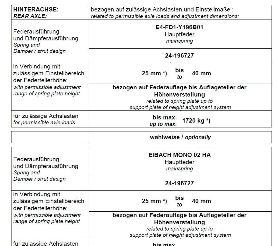 2x Eibach HA Feder Hinterachse für Bilstein B14 Gewindefahrwerk Ersatz E4-FD1-Y196B01