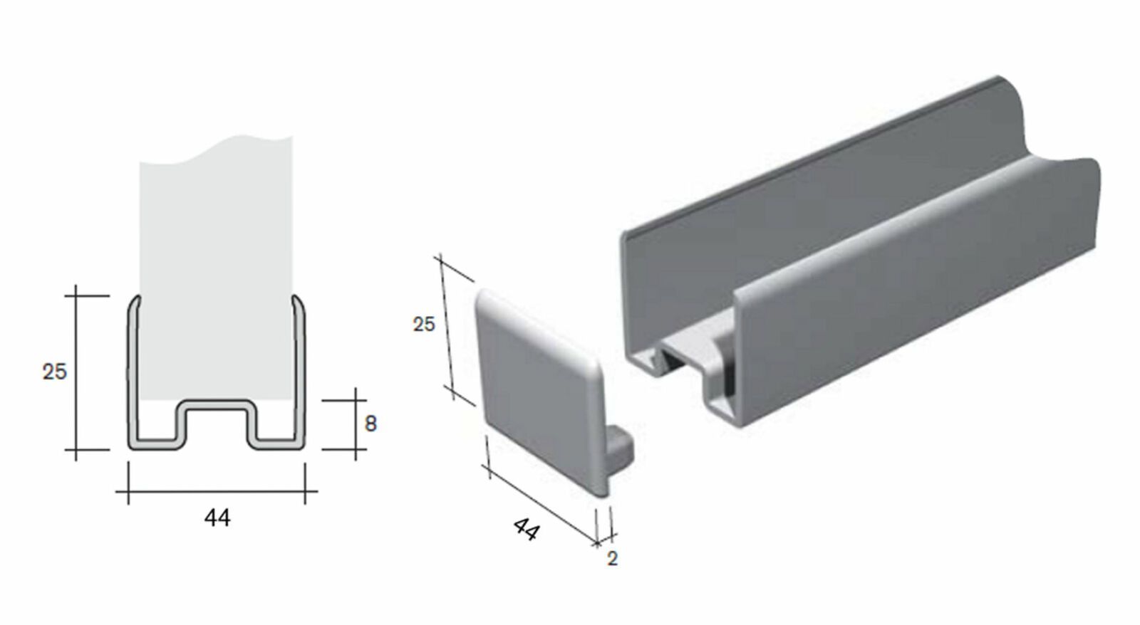 2x Endkappe Wangen schuh 40 /44 mm Endstück Abschlusskappe Nobilia Küche Stollen