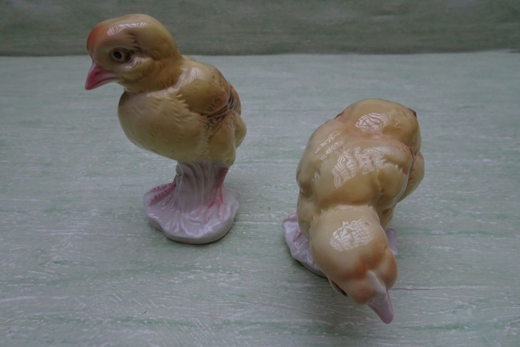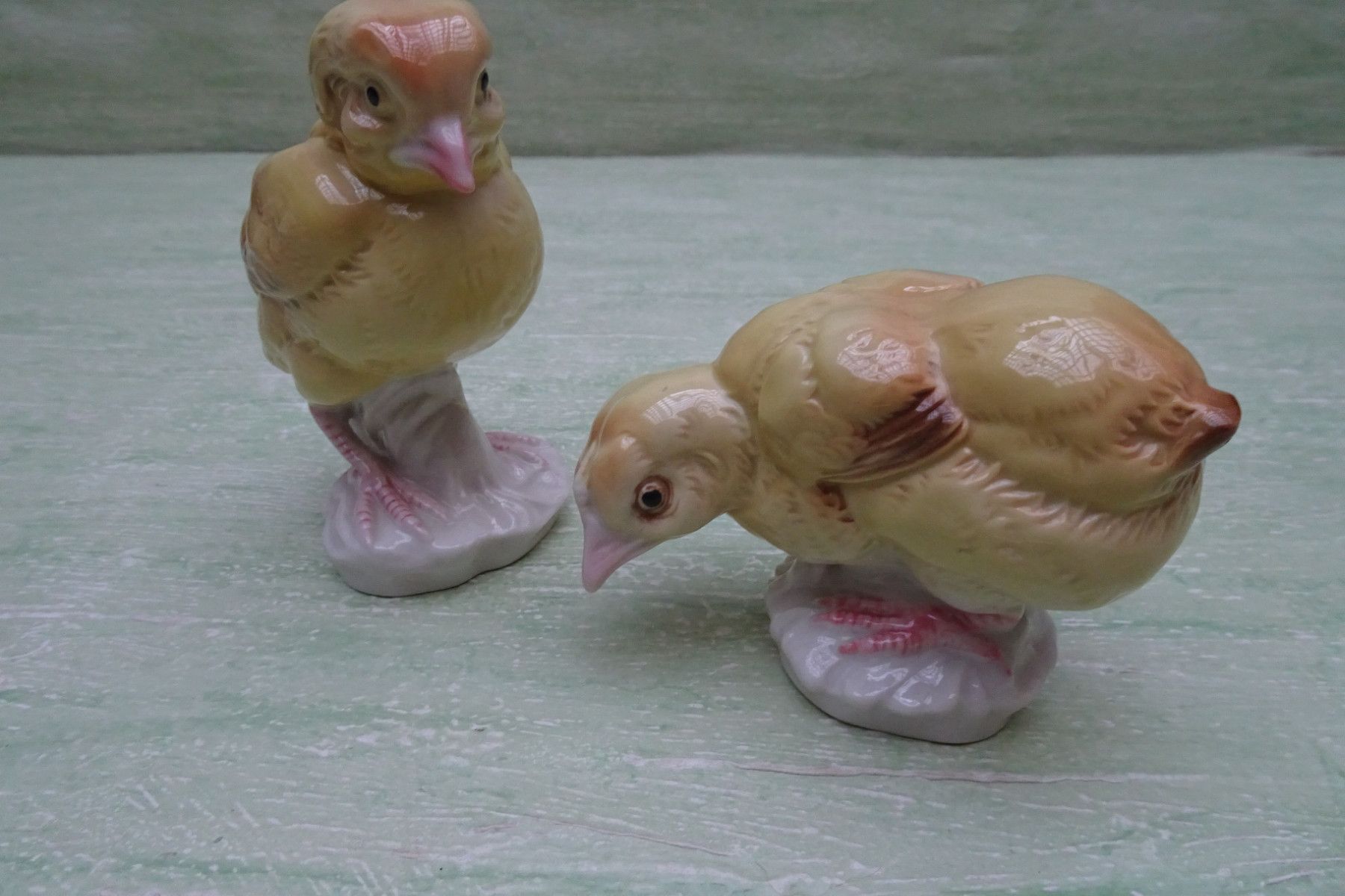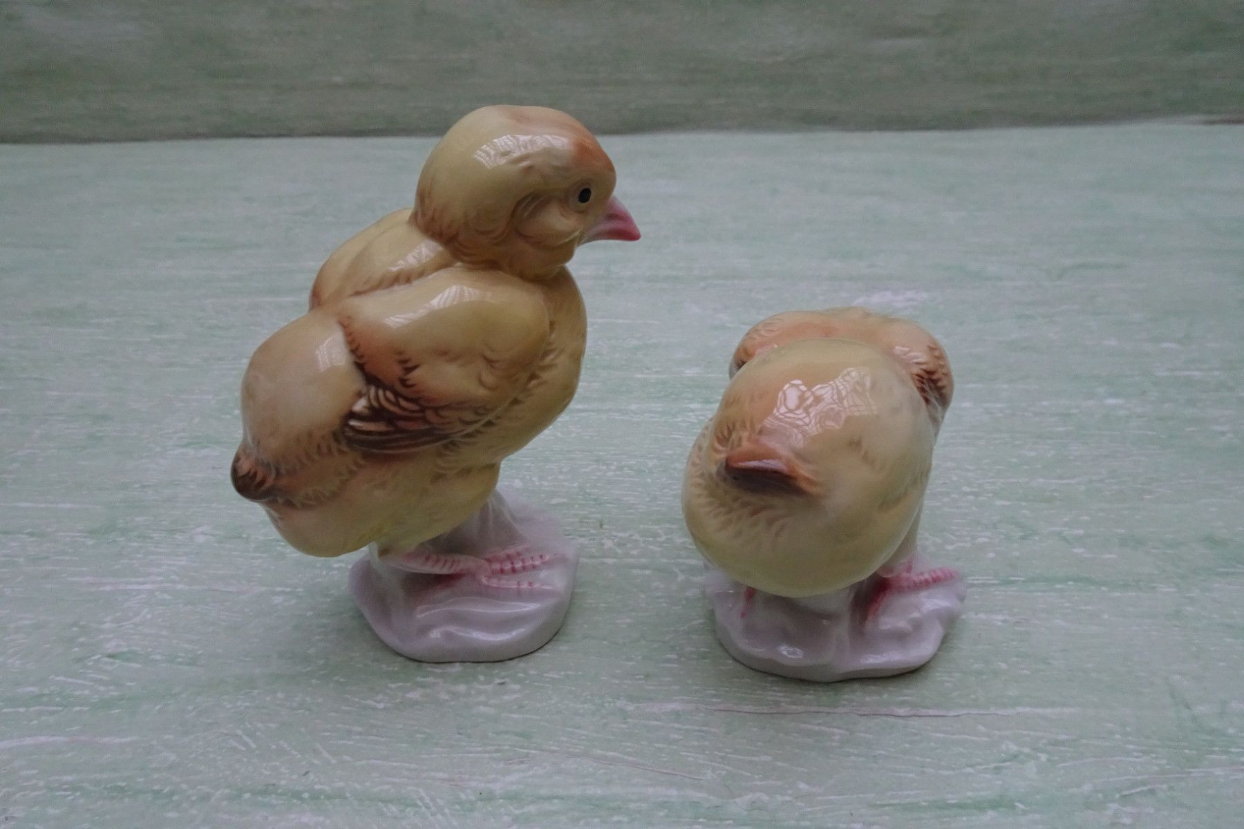 2x Ens Volkstedt Thüringen Küken Tiere Vögel ca 10 & 6,5cm