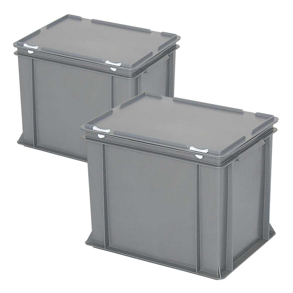 2x Eurobehälter mit Scharnierdeckel, LxBxH 400x300x330 mm, PP, grau