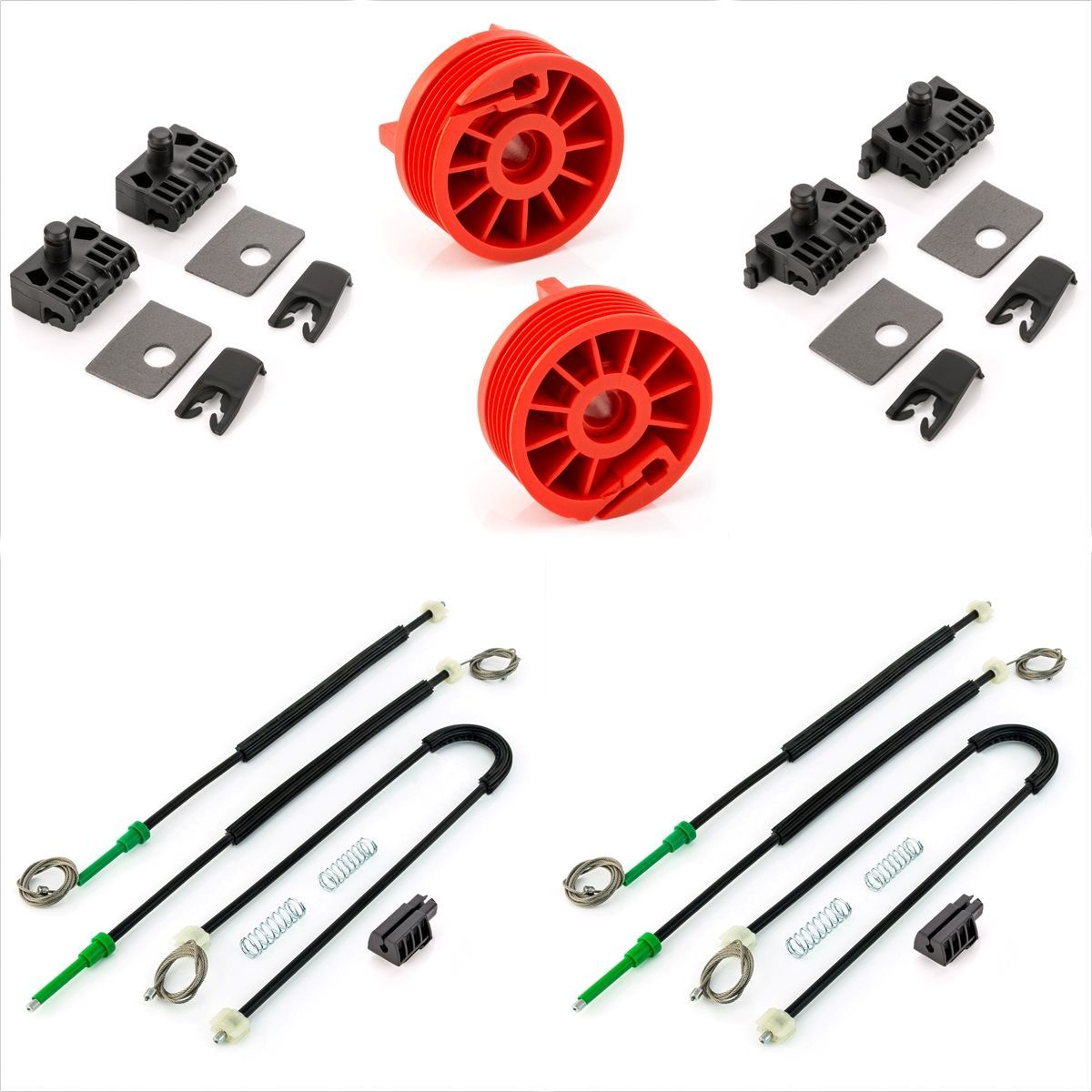 Fensterheber Reparatursatz set vorne links + rechts 4/5-türig Autoteile-Okzam, RST-AG, Alot-Performance, Baseparts, Autoteile, Auto, Ersatzteile, LST, OKZAM, Reparatur, Set, Satz, Teil, Ersatz, Ersatzteil, Austausch, Automobil, KFZ, Fahrzeug, Teile, Fenster, Heber, Elek, elektr, elektrisch, manuell, glas, scheibe, instandsetzen, Türen, seil, seilzug, Fensterführung, motor, Bowdenzug, Clips, Clipse, Rolle, Gleit, Fensterschiebe, Mitnehmer, Gleitbacken, Kunststoffgleitstück, Gleitstück, Metal