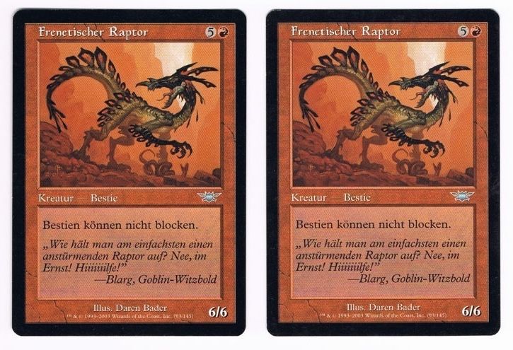 2x "Frenetischer Raptor", Uncommon aus "Legionen", Erhaltung siehe Text