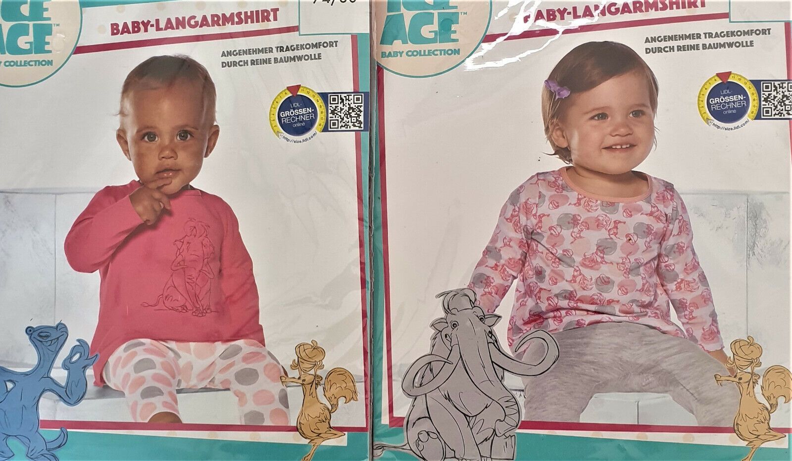 2x Ice Age Baby Langarmshirt T-Shirt süße Motive Druckknöpfe Baumwolle 62 / 68