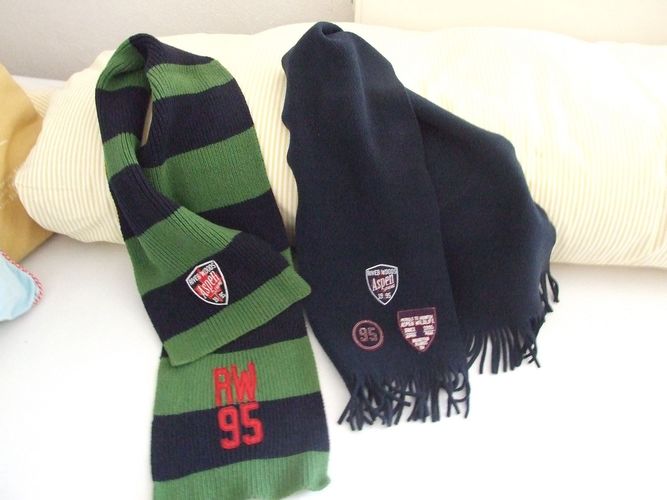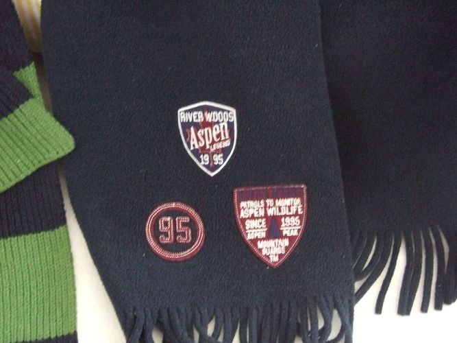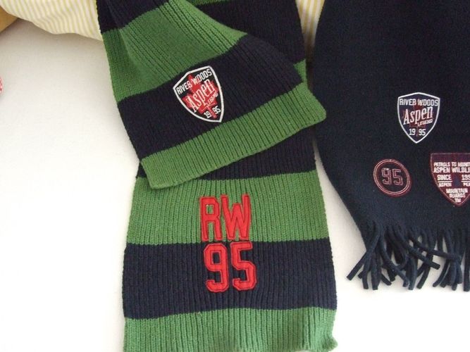 Unisex - Kinder - Jungs von RIVER WOODS North Eastern Suppliers sportlich flottes Accessoires-Set in blau und grün blau-grün: 124 x 20 cm Baumwolle blau: 112 x 22 cm (ohne Fransen) Fleece Kombifreund - Capsule Warderobe UVP 50 35 € waschbar - Feinwäsche in gutem, getragenem Zustand, wegen Größenwech