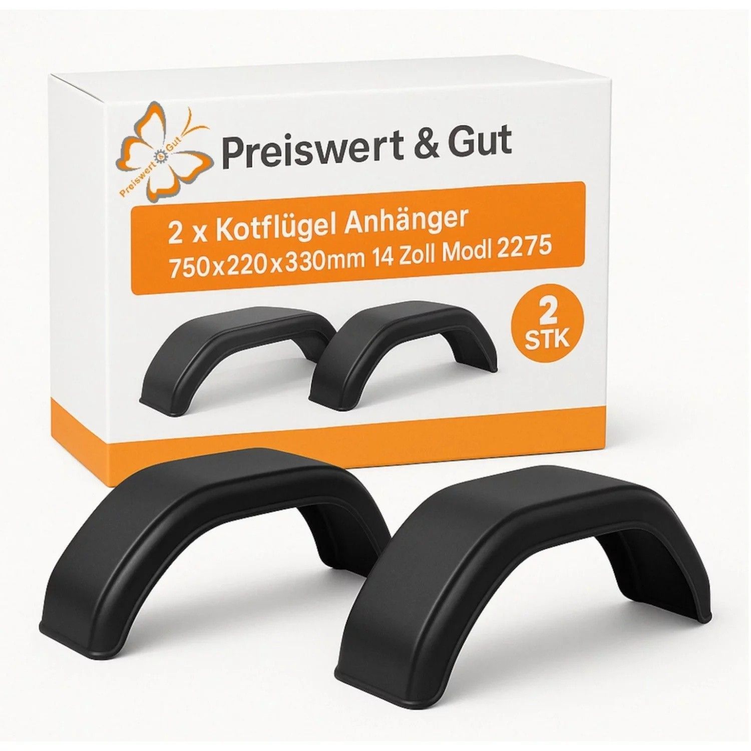 2x Kotflügel 14 Zoll Kunststoff Anhänger - Schutzblech 750x220x330mm rund Modell 2275