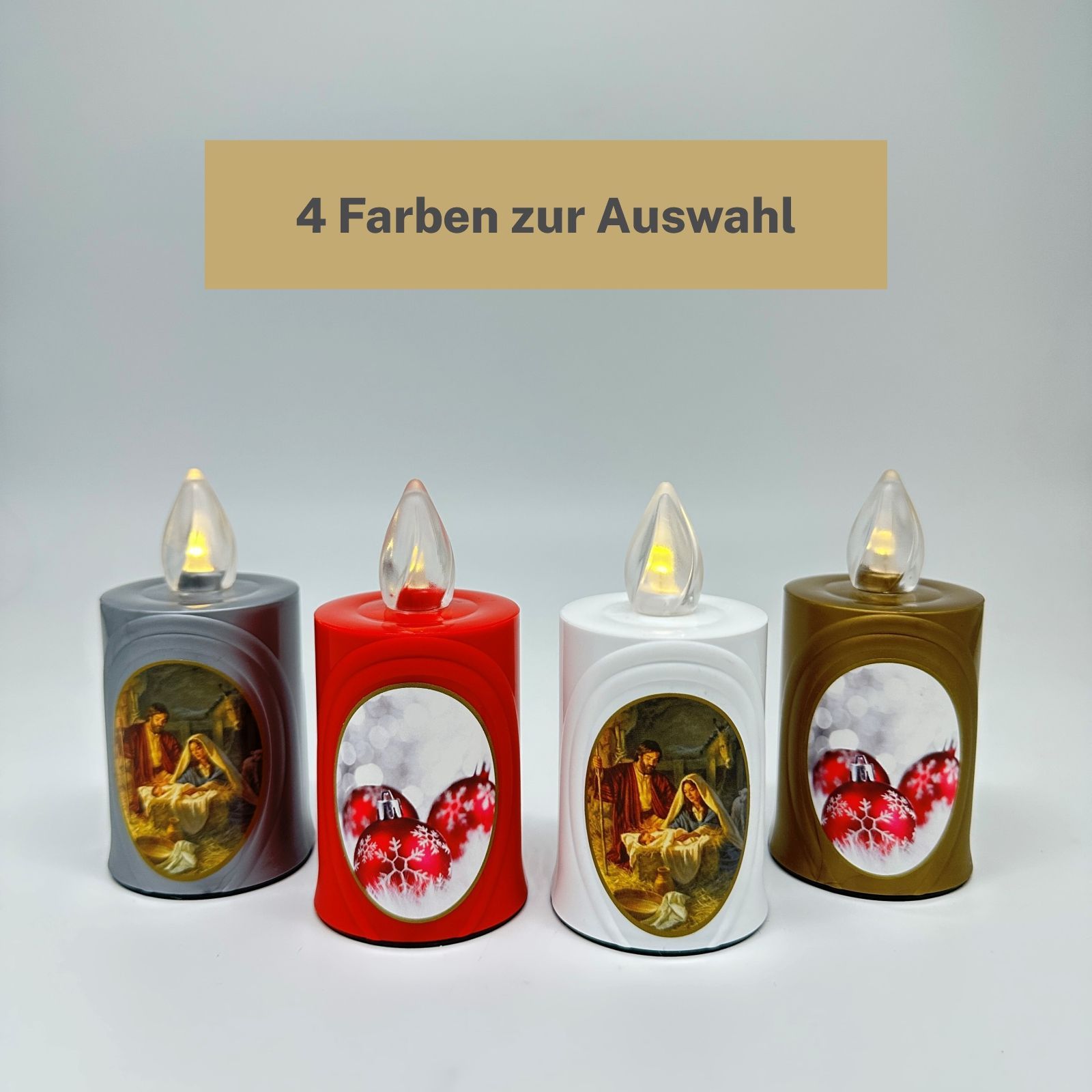 2x LED Weihnachtskerze Flackereffekt lange Brenndauer gold mit Weihnachtsmotiv