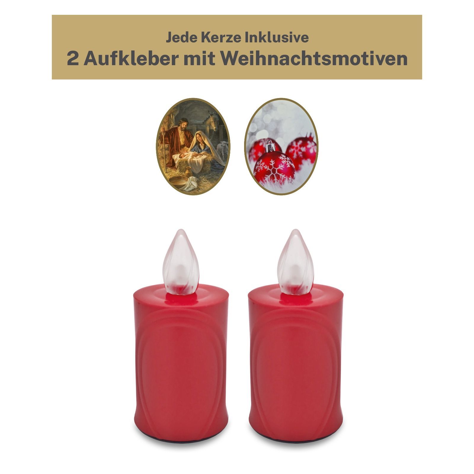 2x LED Weihnachtskerze Flackereffekt lange Brenndauer rot mit Weihnachtsmotiv