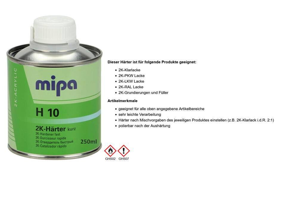 Mipa 2x Mipa 2K Härter H 10 kurz 250ml für Acryfüller Füllprimer Acrylgrund