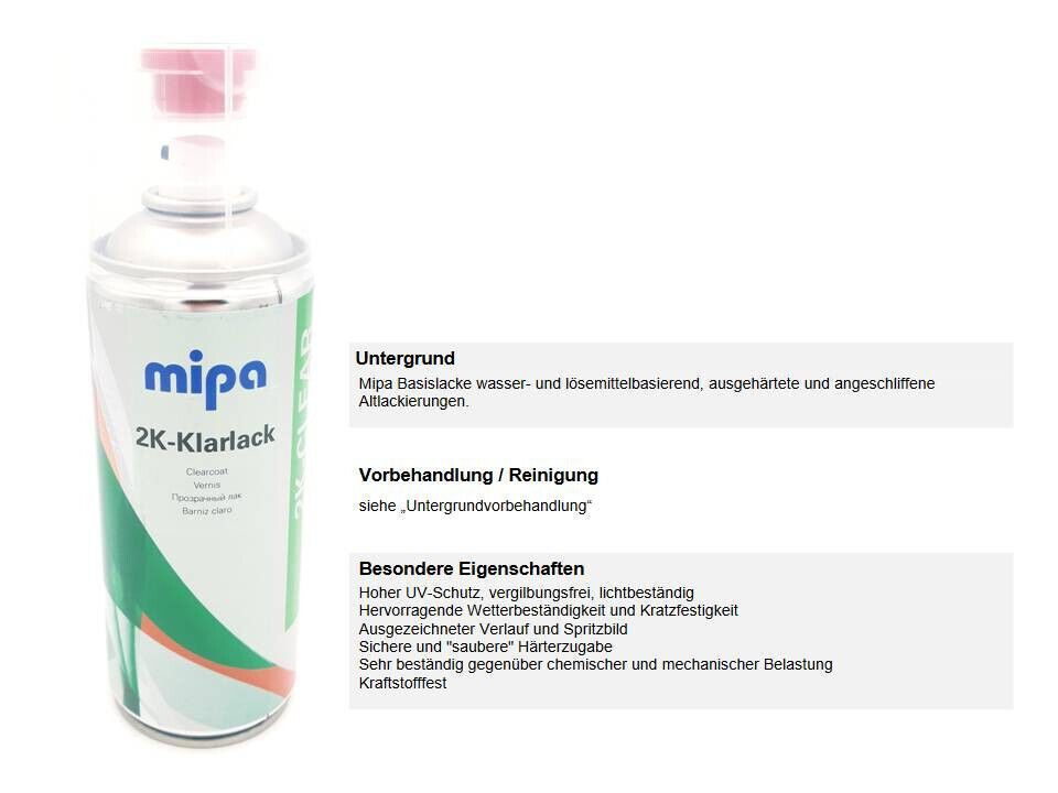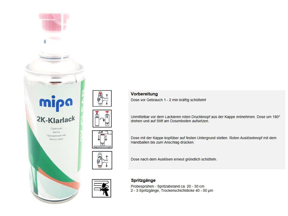 MIPA 2x Mipa 2K Klarlack Spray 400ml farblos hochglänzend inkl. Härter Spraydose