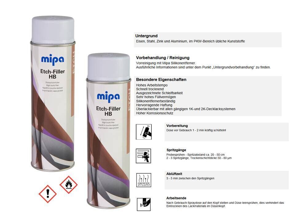 Mipa 2x Mipa Etch Filler Spray 500ml Korrosionsschutz Grundierung Dickschichtfüller