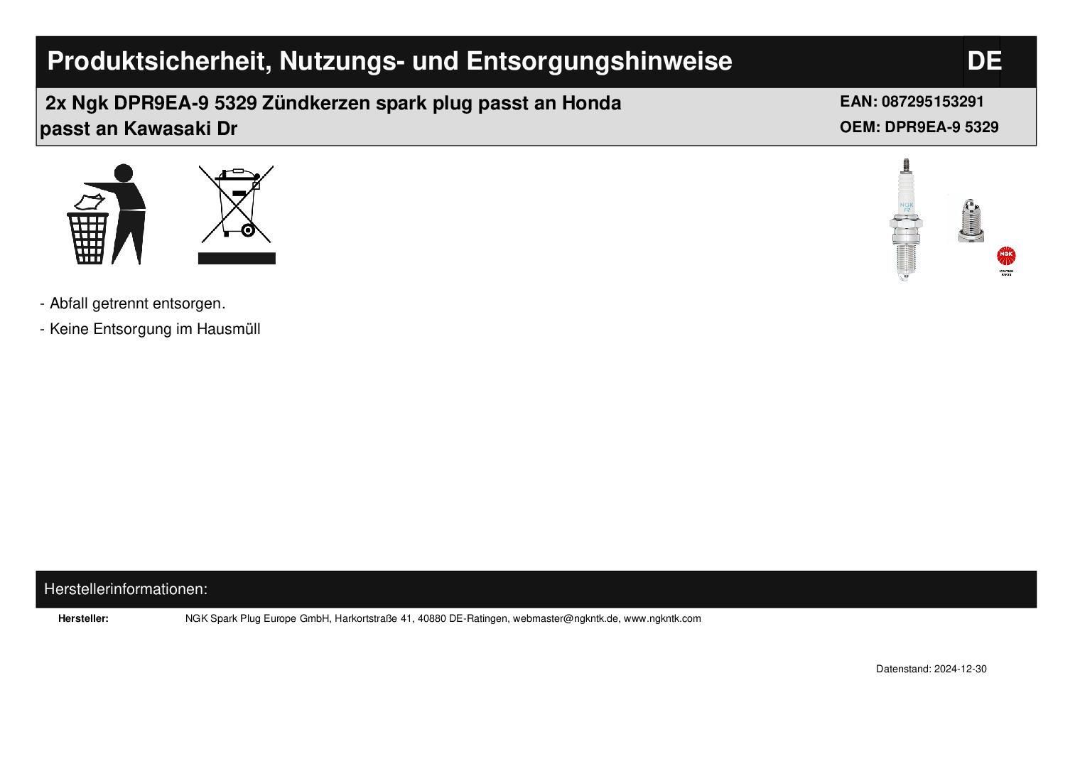 NGK 2x Ngk DPR9EA-9 5329 Zündkerzen spark plug passt an Honda passt an Kawasaki Dr