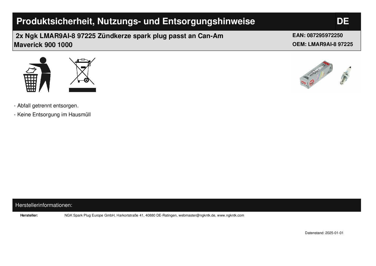 NGK 2x Ngk LMAR9AI-8 97225 Zündkerze spark plug passt an Can-Am Maverick 900 1000