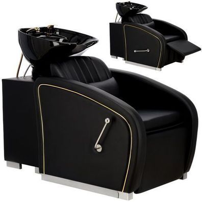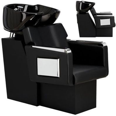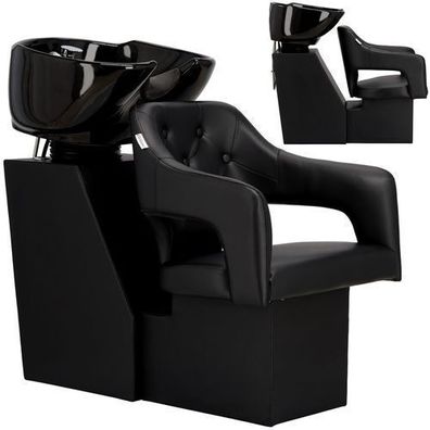 Professionelle Friseurwaschanlage Berlin - Schwarz, Öko-Leder, Bequemer Sitz