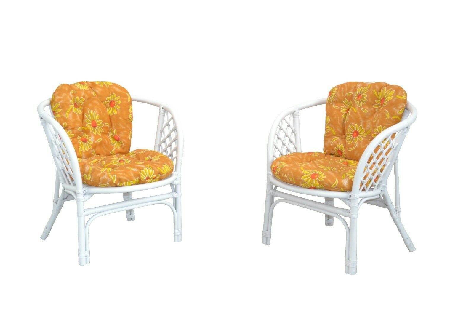 2 x rattansessel lieferumfang: 2 x rattansessel GESTELL AUS RATTANROHR, WEISS LACKIERT SCHAUMSTOFFGEFÜLLTE SITZ- UND RÜCKENKISSEN, STOFFBEZUG. MAßE: CA. BR 66 x T 68 x H 82 CM H SITZHÖHE: CA. 47 CM H Auch als Gruppe mit 4 Stühlen und Tisch erhältlich infos zum versand: - die lieferung ist frei bords