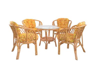 5 tlg Rattansitzgruppe honigfarben Tischgruppe inkl Kissen Rattansessel Stuhl A2