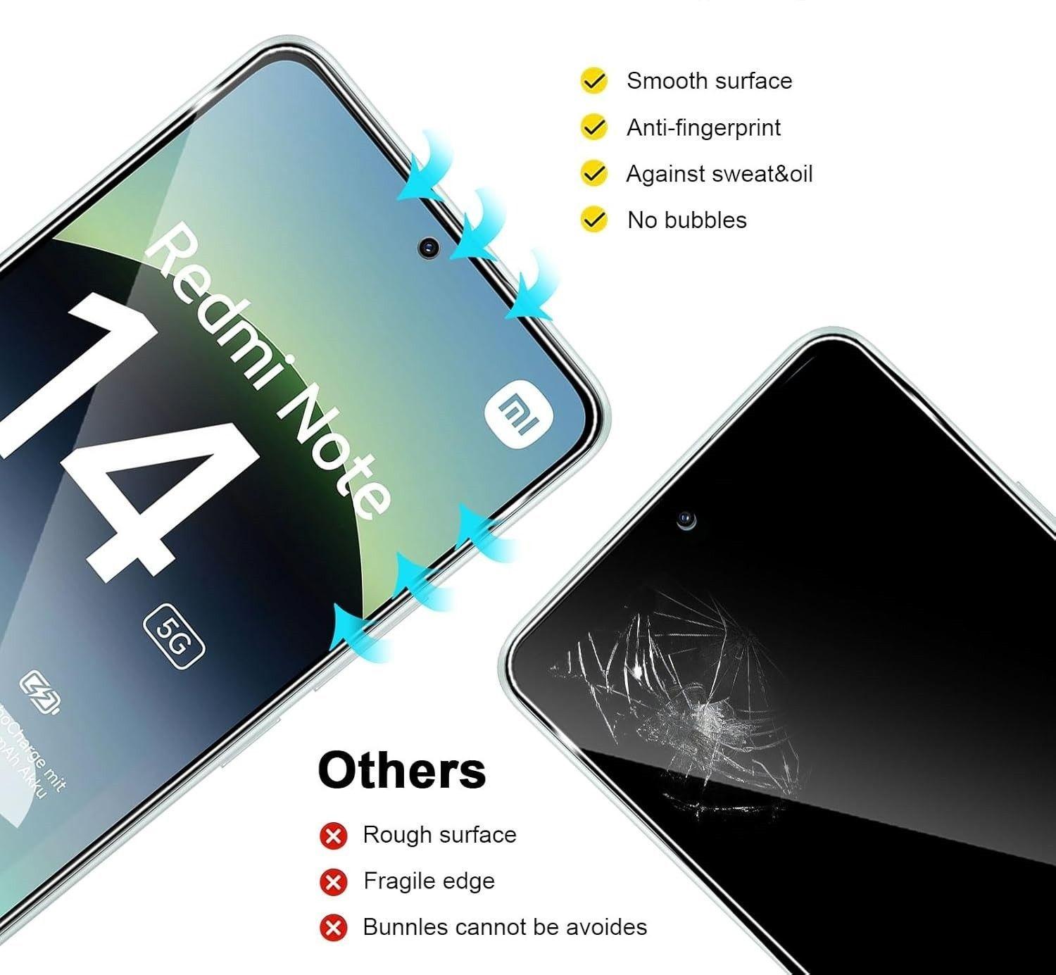 2x Redmi Note 14 5G Panzerfolie Schutzglas DisplaySchutz Tempered Glass 9H