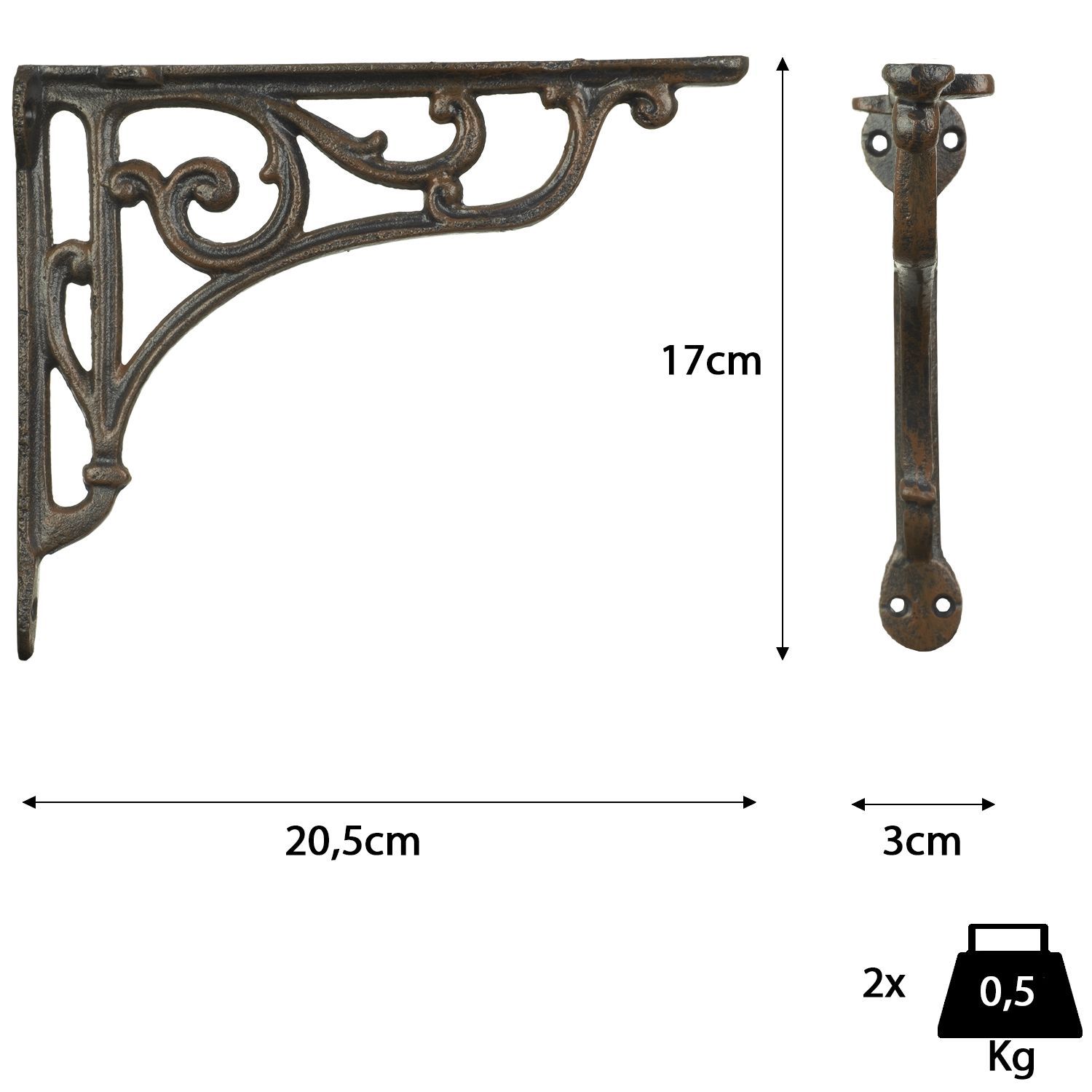 2x Regalwinkel Wandregal 20,5 x 17 cm Regalträger Halter Wandträger Gusseisen braun