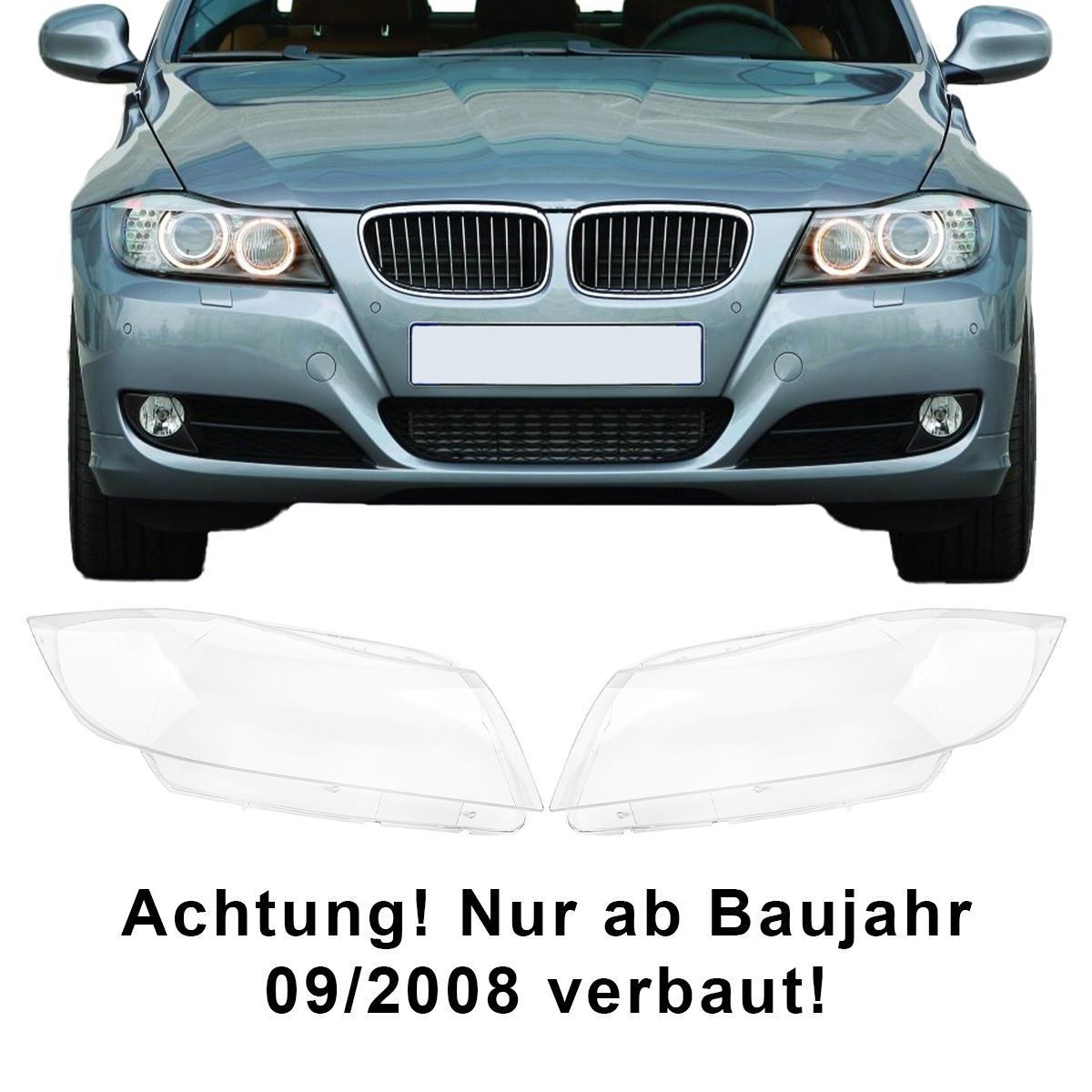 2x Scheinwerfer Glas Streuscheibe links rechts Set für BMW 3er E90 E91 2008-2013