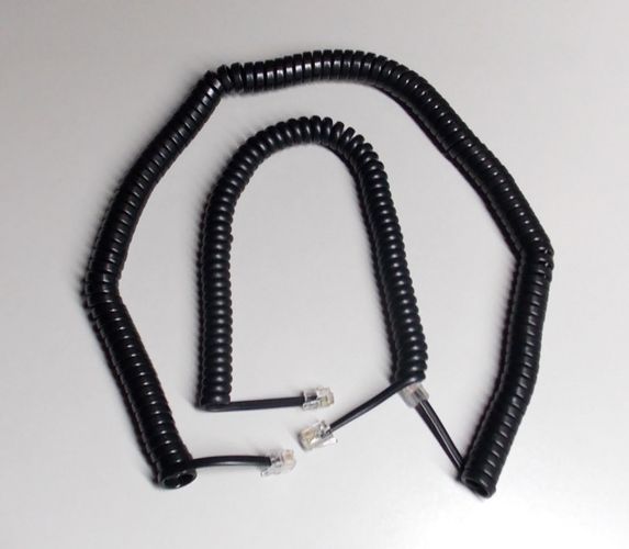 2x Spiralhörerkabel schwarz Westernstecker- 50cm + 30cm Ungedehnte Länge der Wendel einmal 50cm und einmal 30cm. Wahrscheinlich unbenutzt - Zustand: siehe Foto
