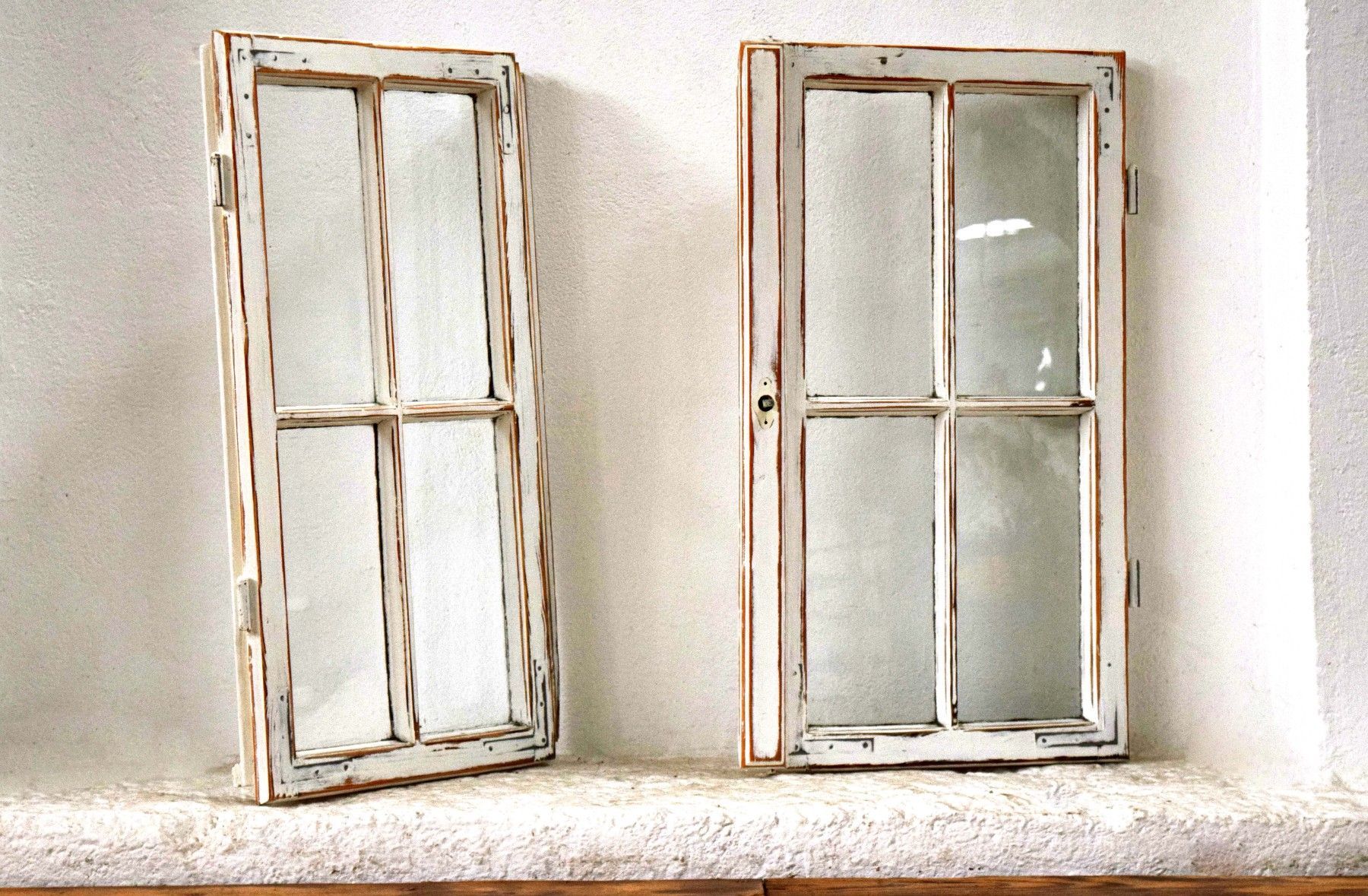 2x Sprossenfenster Antik Alt Vintage Shabby Weiß Deko Landhaus Weiß Fensterflügel
