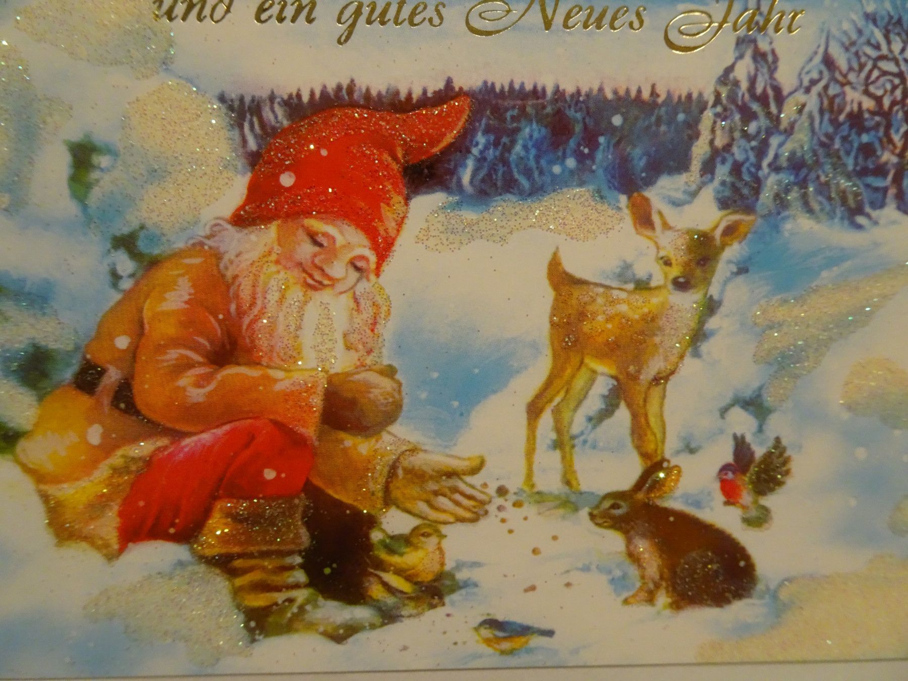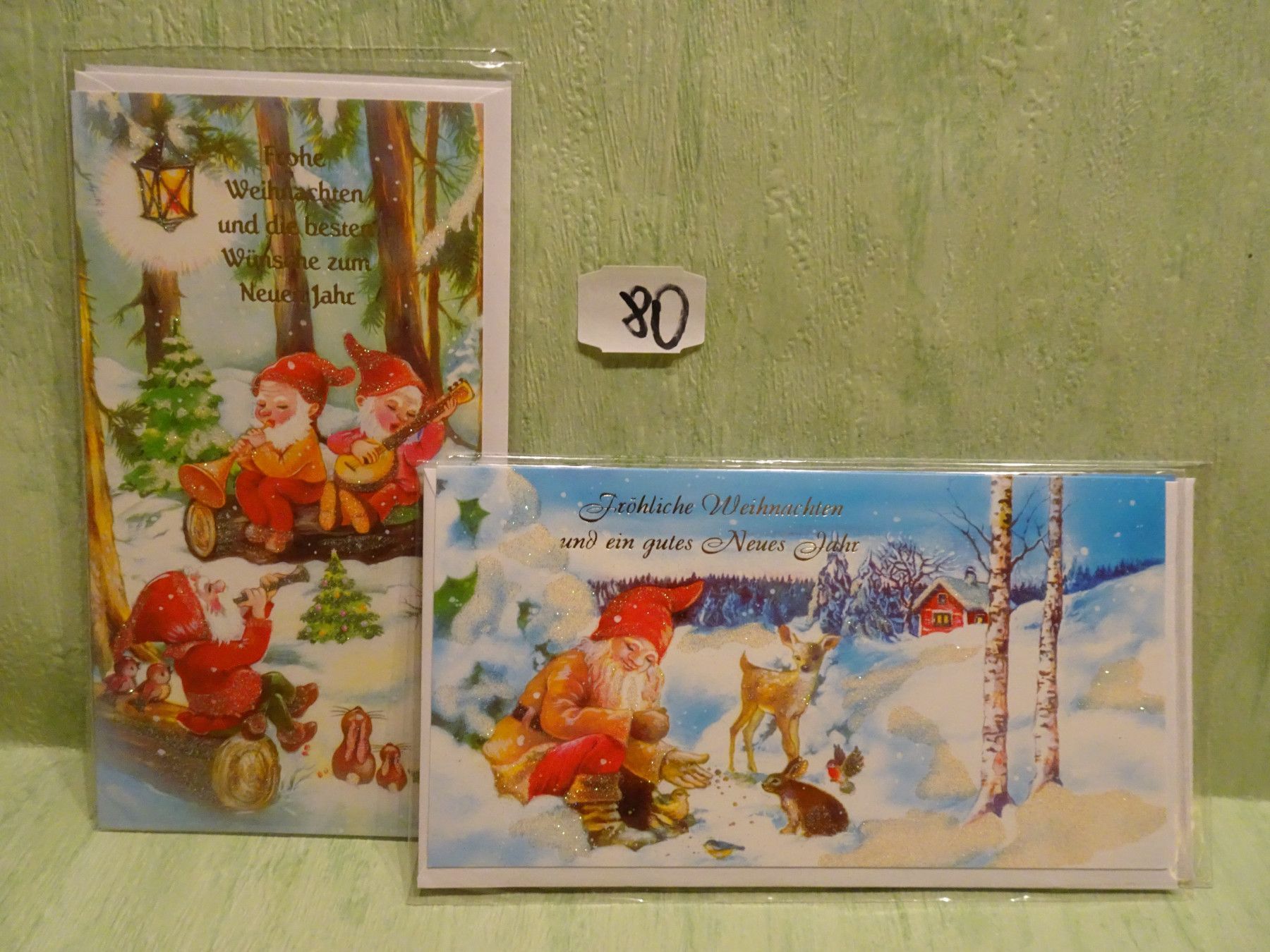 Taunus Verlag 2x Taunus Verlag Weihnachtsgrußkarten & Umschlag Zwerge Wichtel mit Glimmer