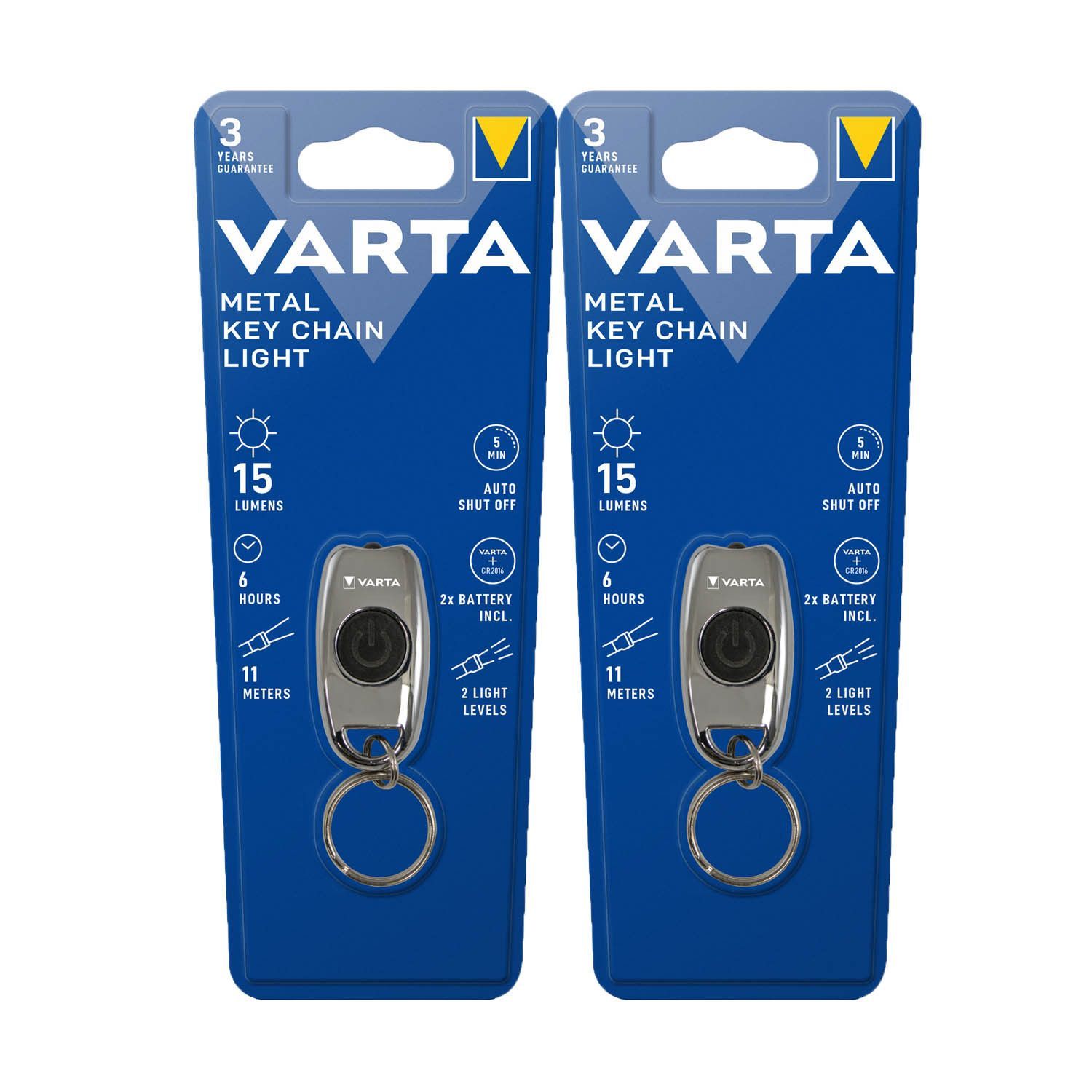 Varta 2x Varta LED Taschenlampe Metal Key Chain Light 15lm inkl. 2x Knopfzelle CR2016