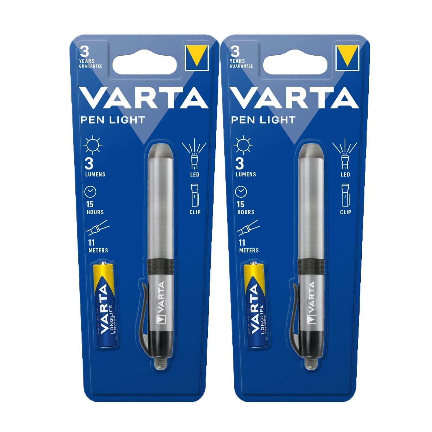 Varta 2x VARTA PEN LIGHT 3 Lumens Alu Pen Light Pupillenleuchte Stiftleuchte mit Clip