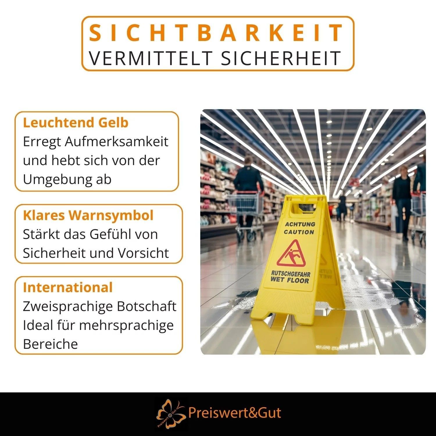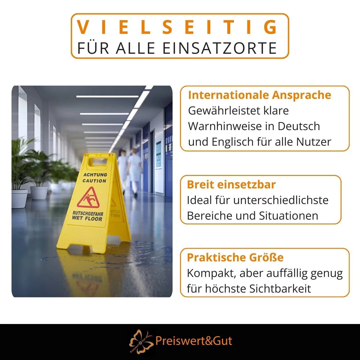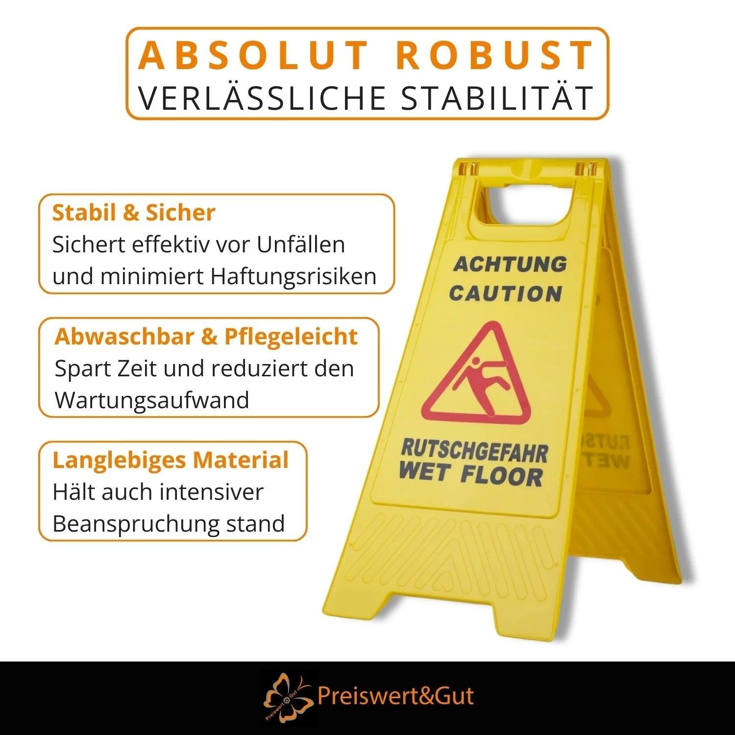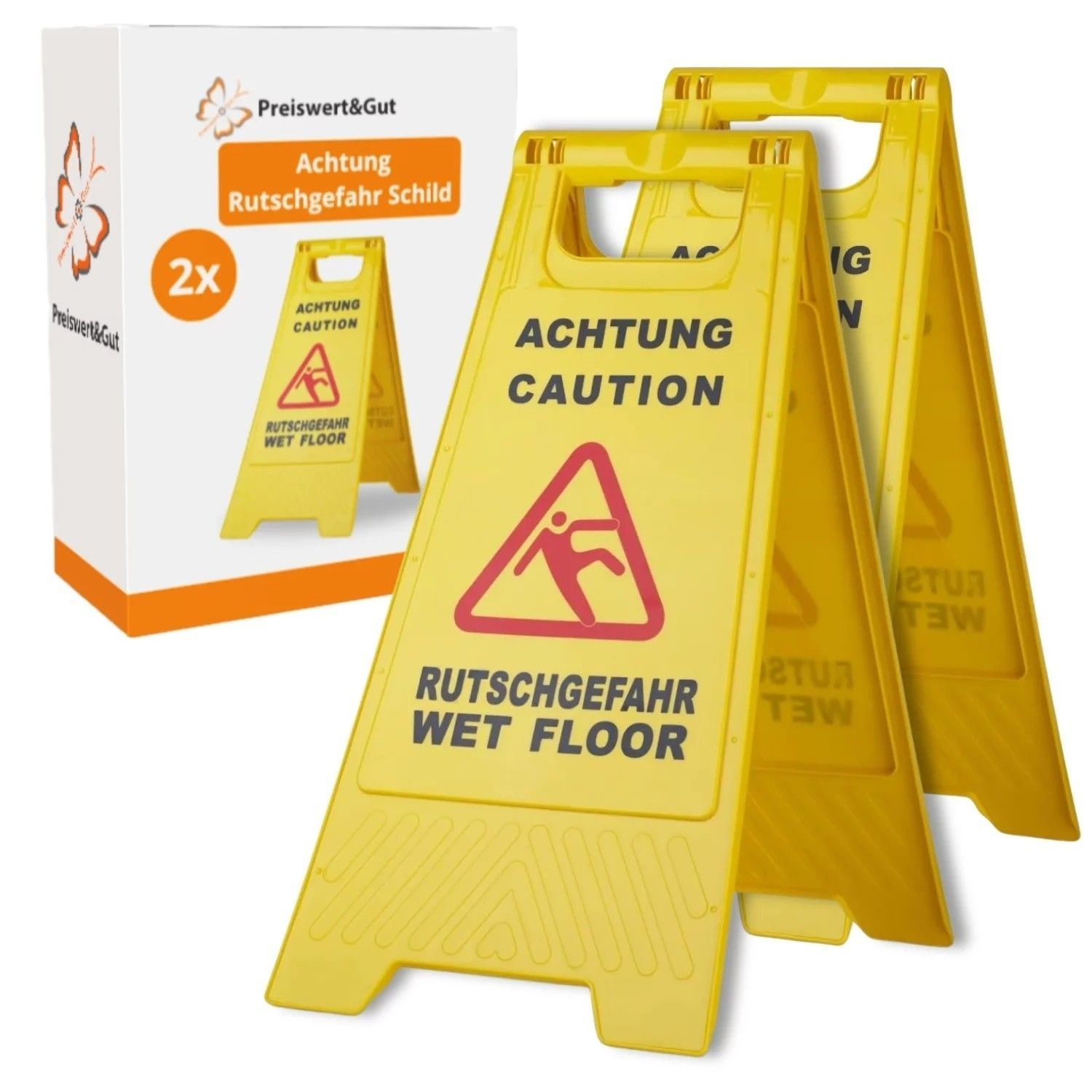 2x Warnschild Rutschgefahr - Aufsteller Caution Wet Floor 60cm gelb Kunststoff