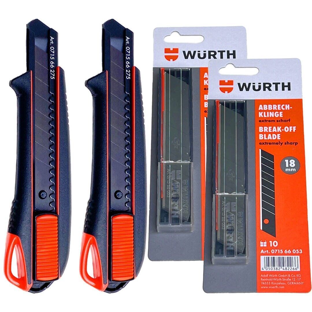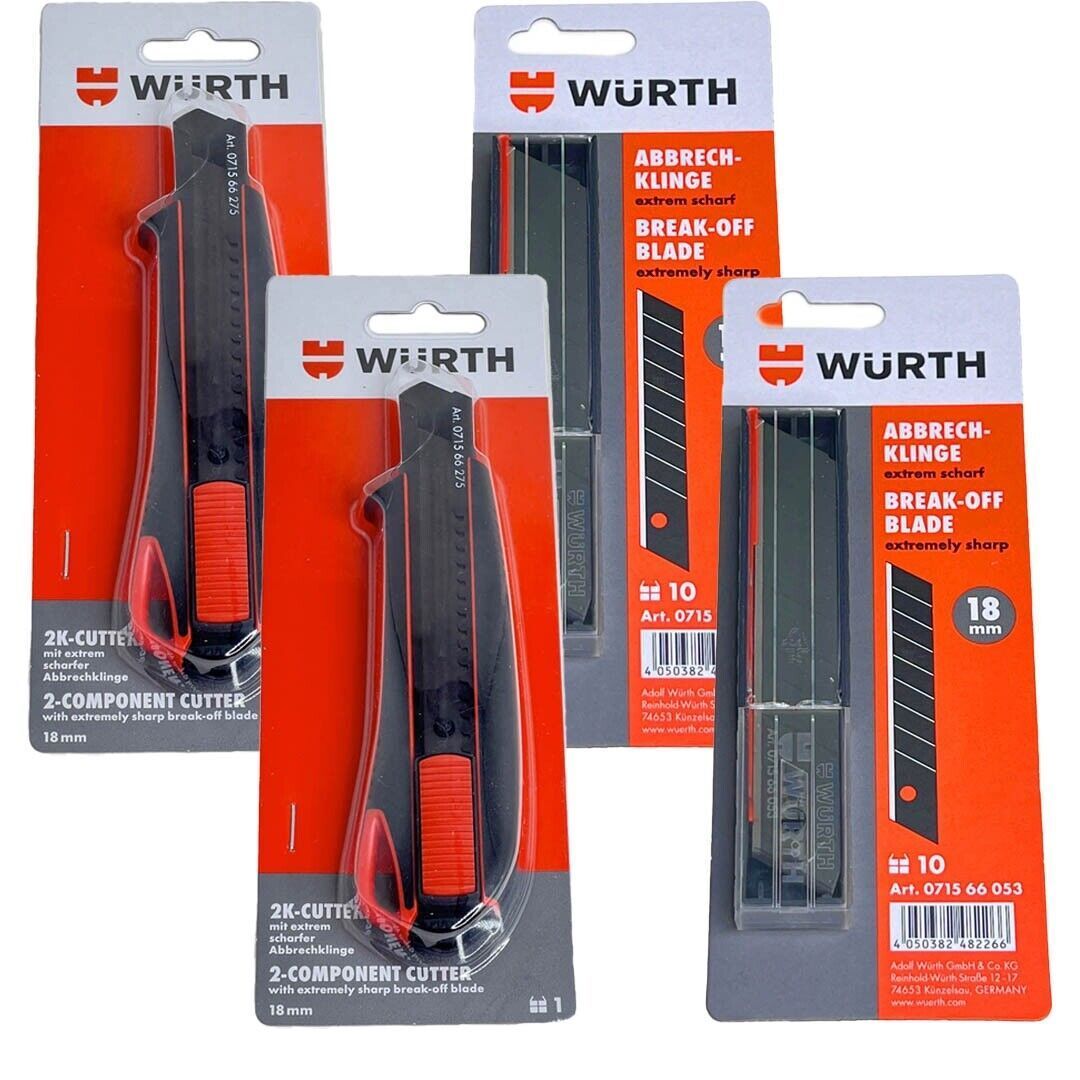 • Würth 2K Cuttermesser 18mm + 23 Klingen extrem scharf Teppichmesser 071566275