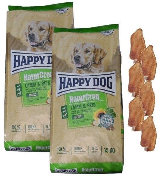 2x15kg Happy Dog Naturcroq Adult Lamm&Reis Hundefutter + GRATIS Kaninchenohren