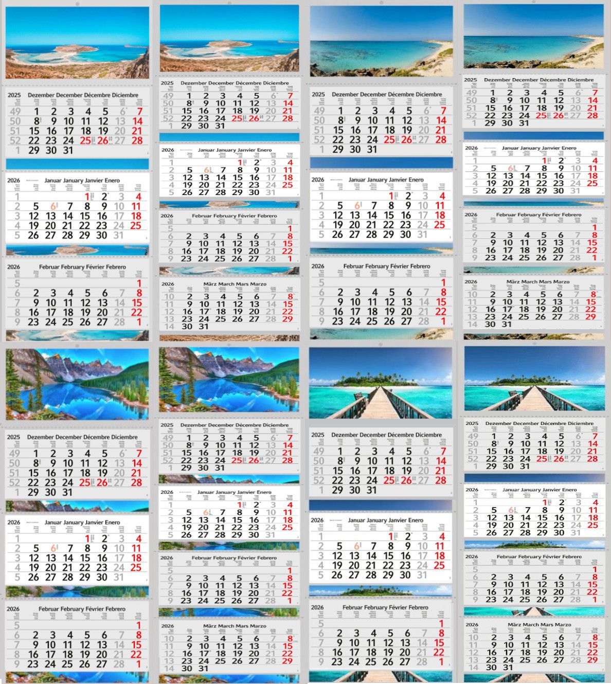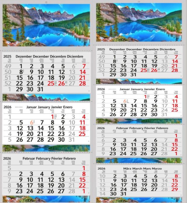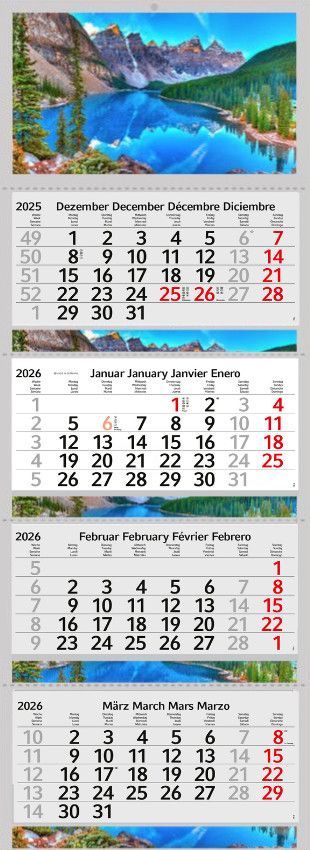 3 / 4 Monatskalender 2026 Wandkalender Fotokalender Bürokalender Kalender Berge See