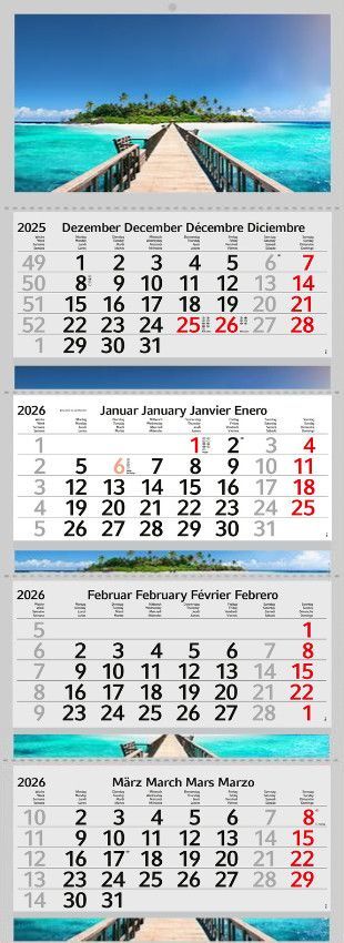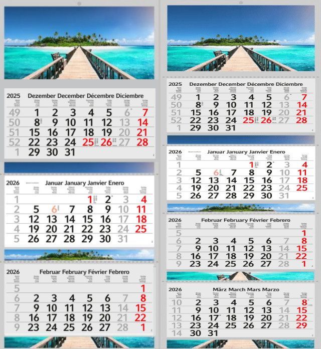 3 / 4 Monatskalender 2026 Wandkalender Fotokalender Bürokalender Kalender Malediven