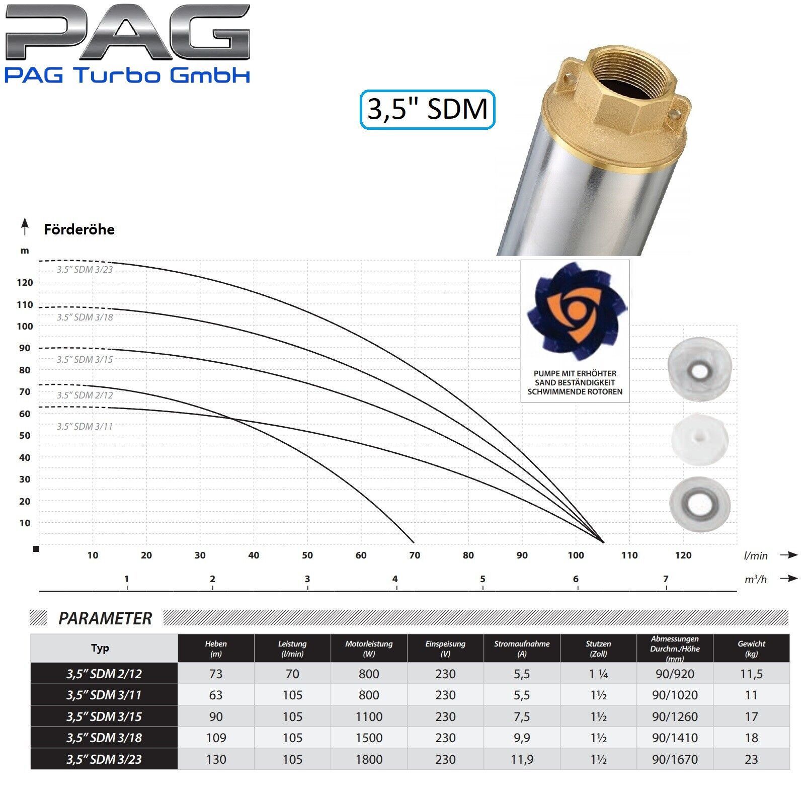 3,5" Tiefbrunnenpumpe 230V - 10,9bar - 6300L/h Inverter intelligente Pumpensteuerung