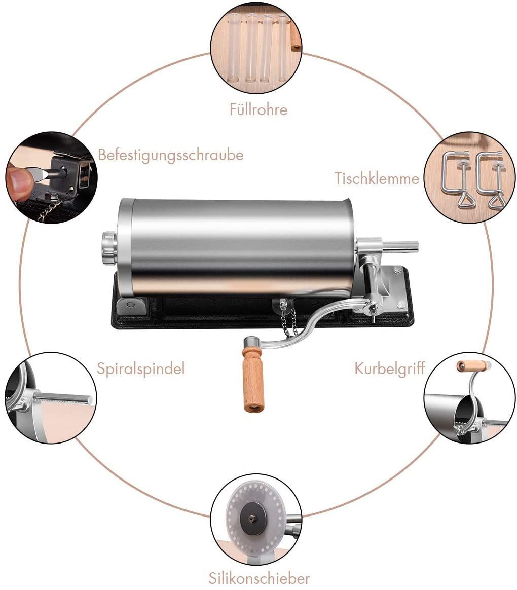 3,6L/4,8L Wurstfüller manuell, Wurstmaschine Edelstahl, Wurstfüllmaschine 4 Füllrohre